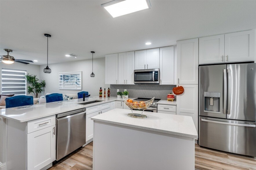 Fully Remodeled in 2023 Move-In Ready Luxury! Welcome to this stunning single-story residence in the desirable Cross Oak Ranch community. Thoughtfully redesigned from top to bottom, this 3-bedroom, 2-bathroom home blends modern elegance with everyday comfort.The heart of the home is the chef-inspired kitchen, showcasing sleek Corian countertops, abundant cabinetry with pantry storage, and premium stainless steel appliances including the refrigerator, washer, and dryer. The open-concept design flows seamlessly into the spacious living area, creating the perfect setting for both sophisticated entertaining and casual gatherings.Retreat to the luxurious primary suite, featuring a fully updated bath with a new walk-in shower, dual vanities, and refined finishes. Throughout the home, you ll appreciate the meticulous upgrades: new HVAC, flooring, cabinetry, interior doors, blinds, designer paint, upgraded light fixtures, ceiling fans, and modern bathroom fixtures.Step outside to your expansive backyard oasis, offering plenty of room for outdoor entertaining, weekend barbecues, or peaceful relaxation.As part of the vibrant Cross Oak Ranch community, enjoy exclusive amenities including a sparkling pool, splash pad, scenic walking and jogging trails, basketball court, playgrounds, and tranquil private ponds. Ideally located within walking distance to the elementary school and just minutes from major thoroughfares, shops, restaurants, and entertainment.This home is the perfect blend of sophistication, convenience, and lifestyle ready for its new owner to move right in and enjoy.