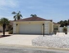 SEASONAL RENTAL! GOLF FRONT COURTYARD VILLA - 5TH GREEN OF NANCY LOPEZ CHAMPIONSHIP GOLF COURSE. Spacious open patios along the side and across the back of the villa, are equipped with a GAS GRILL and multiple seating and dining options to enjoy WATCHING GOLFERS chip and putt or just take in the Florida sunshine. There is a MEDIA ROOM with POWER RECLINING LOVESEAT and SMART TV. GRANITE countertops, white cabinets and STAINLESS APPLIANCES make the kitchen a very enjoyable spot for preparing meals when you're not taking advantage of the many dining options in and around The Villages. The pendant lights and BREAKFAST COUNTER, which is open to the dining area, make entertaining or every day living a breeze. The open floor plan flows very well through the nicely furnished dining area and living room which are open to the Florida Room offering great GOLF COURSE VIEWS. The PRIMARY BEDROOM has queen bed, WALK IN CLOSET and EN SUITE BATH with WALK IN SHOWER and GRANITE countertop. The GUEST AREA is adjacent to the dining area and has a pocket door entry, offering nice privacy. The guest bedroom which has a queen bed and a good size wall closet is adjacent to the UPDATED GUEST BATH with TUB/SHOWER combo, and GRANITE countertop. There is an inside laundry room with full size washer and dryer. Stay up to date with work or emails at the office area set up in the garage with large screen computer monitor/tv and printer. This rental also includes the use of a 2013 EZGO GAS GOLF CART and 2 SETS of GOLF CLUBS. There is a $50 fee payable to The Villages Community Development District for each Lifestyle ID, which will give you access to enjoy the golf, rec centers, pools, clubs, shuffleboard, tennis, pickle ball and other activities duriing your stay. Located less than 1/4 mile to Mulberry Rec Center and pool, Walgreens, Mulberry Plaza with restaurants, Publix grocery store, medical offices, VA Outpatient Center. Just moments to one of the best restaurants in the Villages, Legacy Restaurant at Nancy Lopez CC. Also close to Glenview CC, Savannah Center, many golf course options and many other shopping options. Enjoy a number of live performance and concert venues, live music at many restaurants and FREE NIGHTLY ENTERTAINNMENT at Spanish Springs, Lake Sumter Landing and Brownwood town squares. Renter pays online Rentspree application fee of $49.