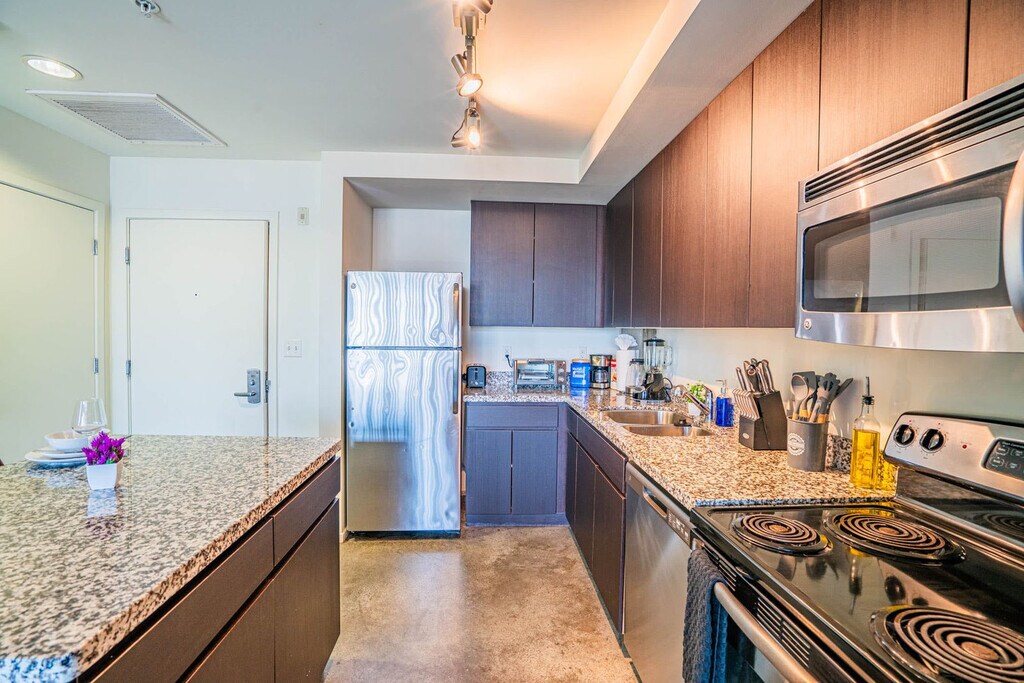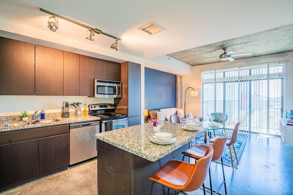 The advertised rate of $2,219/month is the lowest available price, based on a 30 day(s) stay with a move-in date of August 1, 2026. Rates vary depending on the duration of stay, season, and other parameters. For exact pricing and additional pricing components, please visit our website and enter your desired move-in and move-out dates. The rate is applicable when billed upfront; it can be higher if billed in multiple payments. Live the best of Phoenix and feel at home in this stylish, modern 1-bedroom apartment. Nestled in a peaceful neighborhood yet close to top attractions, pubs, bars, dining, and businesses, it’s perfect for both leisure and work trips. After exploring the city or a busy day, return to comfort and relax in a cozy, stress-free space designed for your rest and recharge. Come unwind in this stylish 1-bedroom unit designed for comfort and sustainability. Enjoy an open-concept layout that seamlessly blends kitchen, dining, and living areas for a modern experience. The unit features a fully equipped kitchen in which you can easily prepare your favorite, delicious meals. Its space and modern amenities are much more than you would expect from a 1-bedroom apartment. It includes a microwave, stove, oven, refrigerator/freezer, dishwasher, toaster, coffee maker with coffee essentials, electric kettle, sink with hot and cold water, glasses, silverware, pots and pans. Stylish interior design with carefully picked amenities and decorations make up for this lovely space. The inviting full bathroom is completely private and separated from the main room. It is stocked with all essential toiletries, so you don’t have to worry about packing anything extra. It includes a bath with a shower, wash basin, mirror, toilet, towels, hand towels, washcloths and essential toiletries. The living room is ideal for relaxing and enjoying the company of friends and family while watching a good movie or a show. It contains a sofa bed, a 4K 55" HDR smart TV and a coffee table. Parking is available with one spot. The guest needs to print their parking pass, and details will be given in check-in instructions. Pets are allowed, depending on size or if they are service animals, for an additional fee of $20 per night. There is a 2 pet maximum and only cats/dogs are allowed. This community focuses on eco-friendly living, social connection, and exceptional service. With unique amenities and a sleek design, this space offers the perfect balance of relaxation, convenience, and conscious living in the heart of the city. Guest verification is required, and all guests must be 23 years old and above. To abide by all legal requirements and building security rules, you may be asked to provide a copy of your official government-issued photo ID, confirm your contact information, provide a valid credit card with a name that matches your ID, and pass through our verification portal. In some instances, you may need to complete a criminal background check. If you are found to have brought pets without prior notification, there will be a $500 fee. There are breed restrictions: Alaskan Mala Mute, Belgian Malinois, Boxer, Show Chow, Dalmatian, Doberman Pinscher, German Shepherds, Husky Breeds, Pit Bull Breeds, Presa Canario's, Rottweiler, Staffordshire Terrier, Wolf Hybrid. There are noise monitors installed in the units (it does not record sounds or conversations), it just measures the noise levels in decibels. If tampered with, there will be a fee. Includes an office desk and chair. [SI]