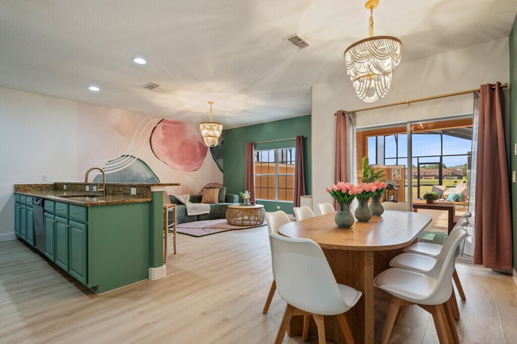 The advertised rate of $7,225/month is the lowest available price, based on a 30 day(s) stay with a move-in date of July 18, 2026. Rates vary depending on the duration of stay, season, and other parameters. For exact pricing and additional pricing components, please visit our website and enter your desired move-in and move-out dates. The rate is applicable when billed upfront; it can be higher if billed in multiple payments. Feel at home in this 4-bedroom townhome, a perfect family escape located just 9 miles from Disney. This home is situated in the gated Paradise Palms Resort. This home features Moana, Frozen, Toy Story and Cars-themed rooms, a private heated pool and spa, a free BBQ grill, a patio dining area, and four sun loungers. The fully equipped kitchen includes modern appliances, a Keurig, and a French press. For entertainment, there is a cozy living room with a 55” smart TV and plush sectional. A pack 'n Play, high chair, and stroller are provided for families. Enjoy optional pool heating for $35 per day. Up to two dogs are welcome for a $150 pet fee. Conveniently located, this home is 9 miles from Disney, 16 miles from Universal, 12 miles from SeaWorld, and 27 miles from MCO Airport. Enjoy resort perks such as a zero-entry water park pool, splash pad, waterslide, poolside bar, cabanas, lounge areas, fitness center, arcade, movie theater, and tennis, basketball, and volleyball courts. Parties are strictly prohibited, and a $1,500 penalty fee will be charged for any violations or reported parties. Tampering with smoke detectors will result in a $1,000 fine. Lost keys have a $500 replacement fee. Includes fast Wi-Fi and a dedicated workspace, making it easy to stream and work. Parking is available for three vehicles, with one reserved spot and two first-come spots. Guests are responsible for refilling the BBQ propane tank during their stay. If you plan to ship items, all packages will be delivered to the clubhouse, not to the house, and there is a mandatory $15 handling fee for all packages. [SI]