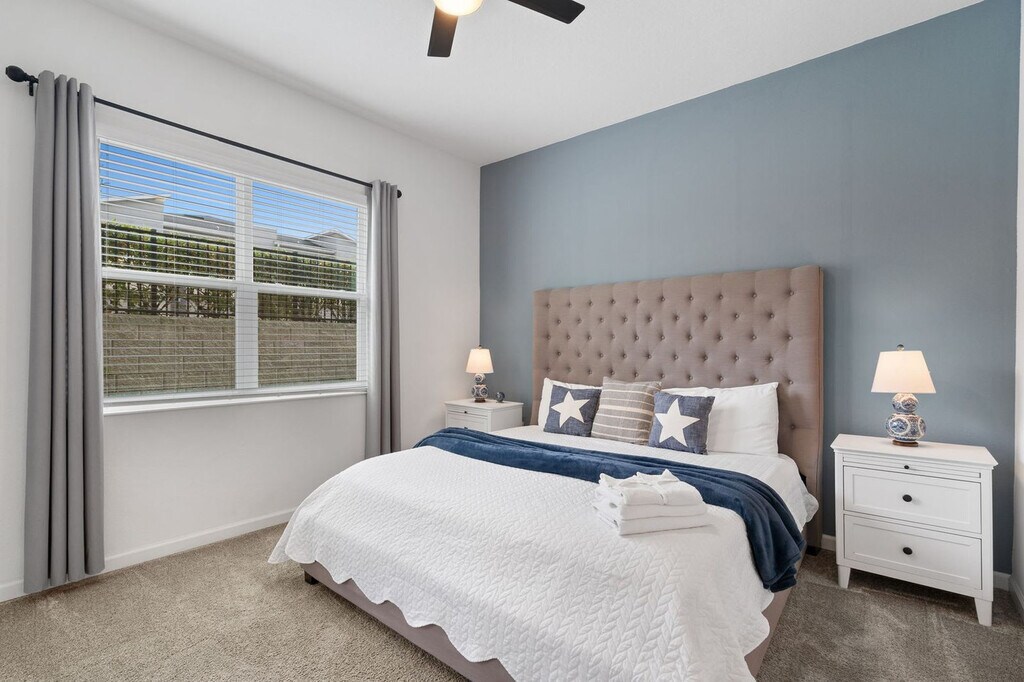 Experience comfort and convenience in this 2-bedroom, 2-bathroom condo, perfect for up to 6 guests. Designed with relaxation in mind, the open living area connects seamlessly to the fully equipped kitchen and dining space. Each bedroom offers the privacy of its own en-suite bathroom. Enjoy peaceful moments on the balcony and take advantage of the prime location in Champions Gate, with easy access to resort pools, a lazy river, and a fitness center for a memorable stay. Experience the comfort and convenience of this spacious 2-bedroom, 2-bathroom condo, perfect for up to 6 guests. The cozy living room with a sofa bed flows into a fully equipped kitchen and dining area, creating an inviting space to unwind. Rest in the king suite or the bedroom with a bunk bed featuring a double and single bed, both with en-suite bathrooms. A dedicated game room adds fun for the kids, while the balcony offers a serene spot to relax. Enjoy added conveniences like a laundry room, free Wi-Fi, parking, and a welcome kit to ensure a seamless and relaxing stay. Enjoy added conveniences like parking and a welcome kit to ensure a seamless and relaxing stay. Champions Gate Resort is a resort-style community that offers every imaginable amenity for a blissful stay. It features an impressive clubhouse with a variety of courts and outdoor activities like tennis, beach volleyball, and a golf course, while its restaurant and fitness center will help you stay refreshed and fit. Its swimming pool complex is perfect for a splashy day, with slides, a lazy river, and a kids splash pool. Plus, the resort is just 20 minutes away from Disney Parks, ensuring plenty of opportunities for fun and adventure. Shopping, dining, and entertainment are also within reach, with stores, restaurants, and supermarkets nearby. It's the perfect place for a family getaway; come and experience all the perks of Champions Gate Resort! Quiet hours are between 22:00 and 8:00. No smoking and pets are not allowed. [SI]
