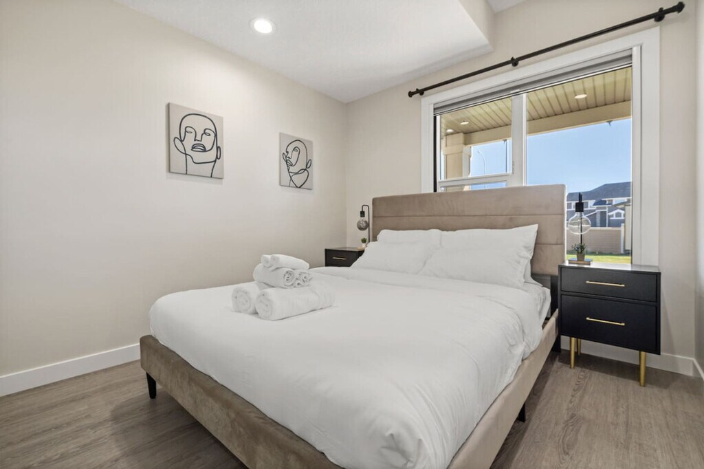Welcome to your private getaway in a bright basement suite featuring its own entrance and large windows, offering an apartment-like feel. Feel at home with a queen bed and a queen fold-out bed, a fully stocked kitchen, and spacious living rooms. Enjoy high-speed Wi-Fi and a 65" smart TV with Netflix, along with the convenience of an in-unit washer and dryer. Free street parking is available for your ease. The apartment is designed with comfort in mind, featuring a spacious living room with a comfortable sofa that turns into a queen bed, a 65" smart TV with Netflix, and high-speed internet. The kitchen is equipped with stainless steel and custom appliances, including a 4-burner stove, oven, microwave, refrigerator, freezer, and dishwasher with pods provided. Enjoy the convenience of a Keurig coffee maker, toaster, blender, and essentials, along with kitchen island seating and bar stools. Enhance your stay with optional upgrades such as a National Park Entry Upgrade, Welcome Basket, Birthday Decor Package, Romantic Wine and Flower Package, Spa at Home Package, Movie Night Upgrade, Christmas Tree and Decor, Halloween Decor and Pumpkin Carving Package, Winter Cozy Package, Beer Tasting Kit, Diffuser and Aroma Set, Additional Bedding and Sleeping Arrangements, Grocery Pre-Stocking Service, and Pet Friendly Package. These are subject to availability. Located in the transit-friendly Sage Hill community, the apartment offers easy access to Calgary Transit bus services connecting to key areas in the city. The neighborhood is developing with ongoing enhancements to its pedestrian pathways and local amenities. You are just 3 minutes from Walmart Supercentre, T&T Super Market, and Sage Hill Shopping Centre, and 5 minutes from Stoney Trail and Calgary Co-op Sage Hill Food Centre. Enjoy quick access to major highways, making road trips to Banff, Kananaskis, and Canmore a breeze. The property is professionally managed to ensure a smooth and enjoyable stay with 24/7 guest support and communication. Self check-in and check-out are available, and detailed instructions are provided for your convenience. A $250 CAD fine will be charged if smoking is detected, and quiet hours are from 10 pm to 7 am to ensure a peaceful environment. Unauthorized late check-out will result in an extra night stay or additional fees. Please remove outdoor shoes while in the home and be mindful of noise levels to avoid complaints. The apartment includes an office desk and chair, making it remote work-friendly with high-speed Wi-Fi for all your work-from-home needs. Registration Number: BL273547