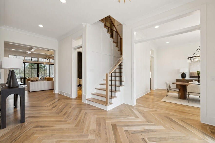 Luxury rental in this custom-built home by Magnolia Trace Properties, located on a pristine, level one-acre lot in the exclusive gated community of Marshall Place in Brentwood. Designed by Sonya Covey Interiors, this residence seamlessly blends transitional style with comfortable living. From the grand Iron Lion front entry to the premium Pella casement windows, every detail has been thoughtfully curated. The home features fireplaces in the great room, hearth room, covered patio and primary suite, offering warmth and ambiance. Enjoy luxury details such as sand and finish white oak hardwood flooring throughout the home, elegant tile, and generous 7 cove crown molding paired with 8 baseboards for a sophisticated touch. The gourmet kitchen is a chef s dream, featuring custom cabinetry, designer-selected quartz countertops with a stunning waterfall island, and a top-of-the-line Thermador appliance package. Additional conveniences include a butler s pantry, a spacious walk-in pantry, and a scullery. The primary wing on the main level offers a sitting area with a fireplace, separate vanity areas each with their own water closet, and a natural stone rainhead shower leading to two walk-in closets with custom built-ins and a stackable washer/dryer connection. The thoughtfully designed floor plan includes a great room and keeping room with access to a covered patio, a secondary bedroom en suite on the main level, and a versatile bonus room, gym, and media room on the second floor. Outdoor living is equally impressive, with a dedicated grilling area and a large yard that backs to trees, providing a perfect setting for relaxation and entertainment.