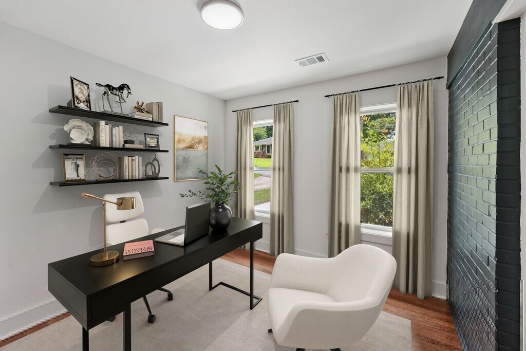 Welcome to your dream home! This stunning brick ranch blends timeless charm with modern elegance, offering 3 spacious bedrooms, 2 full bathrooms, and a dedicated office/study. Step inside to find gleaming hardwood floors throughout, tile in the baths and laundry, and a thoughtful floor plan perfect for both everyday living and entertaining. The gourmet kitchen is a true showstopper, featuring sleek black slim shaker cabinetry with 42" uppers, a white oak island, quartz countertops, and stainless steel appliances including a gas range, dishwasher, over-the-range microwave, refrigerator, and garbage disposal. Enjoy the convenience of a large walk-in pantry, an adjacent dining area with built-in cabinetry for china or barware, and a spacious living room with an electric fireplace. Your primary suite boasts a luxurious en-suite bath with a dual vanity, large tiled shower, and walk-in closet. All bedrooms have ceiling fans, while recessed lighting, pendant lights, and elegant sconced fixtures add warmth and style throughout. This home has been fully updated with brand new electrical, plumbing, HVAC, water heater, roof, gutters, driveway, and walkway-giving you complete peace of mind. Your furry friends will feel right at home here, as both cats and all dogs are welcome! Enjoy outdoor living on the back deck and in the fenced yard, plus the convenience of an attached carport and storage shed. Perfectly situated between Marietta Square and Smyrna Market Village and just 10 minutes from Truist Park, with the added bonus of no city taxes in unincorporated Smyrna. Nothing to do but move in and start making memories! Key Features: - 3 Bedrooms, 2 Bathrooms - 1,531 Square Feet - Washer and Dryer Included - Modern Kitchen with Gas Range - Pet-Friendly: Cats and All Dogs Allowed Don't miss out on this fantastic opportunity! Showings start on October 12, 2025, with a target lease start date of October 19, 2025. Schedule your visit today and make this house your new home! Preferred lease duration is 1 year. Lease to Own option available. Link to our 3D Tour - Security Deposit amount determined by the owner. For each pet, there is a non-refundable move-in fee of $200 and monthly fee of $35. What your Resident Benefits Package (RBP) includes for $45/month? - $250,000 in Personal Liability Protection - $20,000 in Personal Belongings Protection - Credit Booster for On-time Payments - 24/7 Live Agent Support & Lifestyle Concierge - Accidental Damage & Lockout Reimbursement Credits - And So Much More
