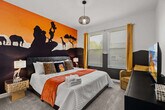 Immerse yourself in magic at this fully themed 6-bedroom, 5-bathroom home in Champions Gate, perfect for up to 18 guests. Every corner of the home—from the fantasy-themed bedrooms to the living room, bathroom, game room, and private pool—keeps the magic alive 24/7. Just minutes from Disney parks, enjoy endless fun and fantasy along with Champions Gate’s amazing amenities like pools, a lazy river, and more. This is the ultimate getaway for Disney lovers! Step into this one-of-a-kind 6-bedroom, 5-bathroom holiday home where every corner is designed to immerse you in the magic of the parks. Beautifully decorated with a fully themed interior, this home guarantees 24-hour enchantment and fun, making it the perfect escape for families and Disney fans alike. From the spacious and modern living and dining room, where Mickey icons and magical touches adorn every detail, to the whimsical decor and fully equipped kitchen, you’ll feel like you’ve stepped into a fairytale. Outside, enjoy your private heatable pool and patio, perfect for relaxing after a day of adventure. The first floor features a stunning Lion King-themed king bedroom with a themed bathroom that captures the essence of the savannah. Upstairs, five additional bedrooms continue the magic with unique designs: the Mickey-themed master king suite, a dreamy retreat filled with charm; the Encanto-themed bedroom, featuring two bunk beds (four twin beds total) and its own enchanting bathroom; a chic Magic Kingdom Castle queen suite, complete with its own private bathroom; a fun Mickey-themed bedroom, equipped with a full bed and a bunk bed with two twin beds, sharing a bathroom with the adventurous Star Wars-themed bedroom, which includes a double bed and a bunk bed with two twin beds. Gather the family in the Movies-themed family room, a perfect spot to relax and watch your favorite films together. Additional conveniences include a laundry room with a washer and dryer, complimentary WiFi, free parking (including a covered garage space), and a welcome package with essential bathroom and kitchen supplies to ensure a seamless start to your stay. With its fully themed decor and magical ambiance, this home is more than just a place to stay—it’s a destination where the fantasy of the parks continues. Mickey is around every corner, from the bedrooms to the dining spaces, making this the ultimate vacation home for those who want to keep the magic alive all day and night. Guests are responsible for replenishing bathroom and kitchen amenities. Pool heating is available for an additional fee, and there is a charge for using the barbecue grill. Champions Gate Resort is a resort-style community that offers every imaginable amenity for a blissful stay. It features an impressive clubhouse with a variety of courts and outdoor activities like tennis, beach volleyball, and a golf course, while its restaurant and fitness center will help you stay refreshed and fit. Its swimming pool complex is perfect for a splashy day, with slides, a lazy river, and a kids splash pool. Plus, the resort is just 20 minutes away from Disney Parks, ensuring plenty of opportunities for fun and adventure. Shopping, dining, and entertainment are also within reach, with stores, restaurants, and supermarkets nearby. It's the perfect place for a family getaway; come and experience all the perks of Champions Gate Resort! Quiet hours are between 22:00 and 8:00. No smoking and pets are not allowed.