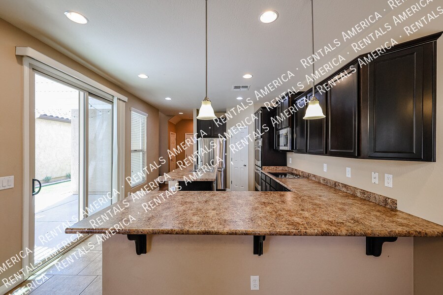 $1,000.00 OFF 1st full month's Rent if Move In by November 20th. Charming Home just minutes from State Farm Stadium & Westgate Entertainment District. A short walk to a landscaped park w/ garden fountain, swimming pool and playground. Open layout w/ family room and kitchen designed to overlook an inviting pergola covered patio surrounded by native plants & synthetic grass. Kitchen features a large island w/ bar seating & built-in sink, counter breakfast bar w/ pendant lighting, rich hardwood cabinets, double wall ovens, built-in microwave, stainless steel appliances and walk-in pantry. Upstairs has a functional split plan w/ center loft and laundry room w/ washer & dryer included. Primary Ste includes a large bedroom, walk-in shower, garden tub, double sink vanity, private toilet room and walk-in closet with open shelving. One Time Admin Fee: $300, Pet Deposit: $300/pet (if applicable), Service Fee: 2%, $39/month Resident Benefits Package, Helping Heroes Discount Available! Carpet Ceramic Tile Disposal Dogs Allowed Dryer Garage Pets Allowed Washer