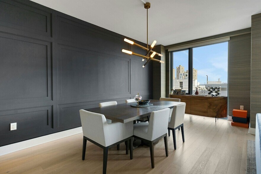 Welcome to unparalleled luxury in this exquisite penthouse at the prestigious Nine on The Hudson. Spanning an expansive 1,893 square feet, this residence embodies sophisticated urban living with open views and resort-style amenities. Three well-appointed bedrooms with abundant custom cabinetry provide exceptional space and comfort, with one featuring a convenient Murphy bed for added versatility. The separate den is perfect for a home office, library, or media room. The open-concept, custom-designed layout offers a generous living and dining area, ideal for entertaining or relaxing with family. Floor-to-ceiling windows flood the space with natural light and showcase beautiful views of the uptown Manhattan skyline. The state-of-the-art kitchen is a chef s dream, boasting Bosch and Thermador appliances, sleek oversized quartz waterfall countertops, and custom cabinetry. Custom built-in closets in every room and additional custom built-in in primary suite. First-class amenities include a full-time concierge, a five-star fitness center spanning multiple floors, a pool, a sunning deck with a barbecue area, a children s playroom, an impressive residents lounge, and a rooftop oasis. This penthouse home offers the ideal blend of style, function, and comfort in one of the Gold Coast s most sought-after luxury buildings. 2 covered garage parking spaces included.