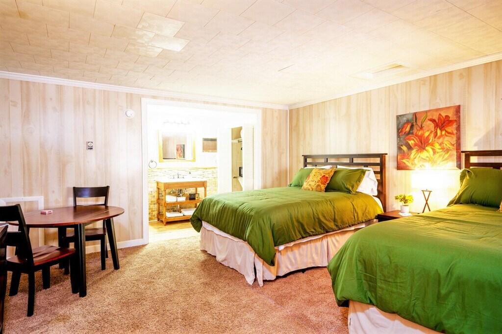 Feel at home in this beautiful lodge at the River Front Resort. This room can sleep up to 4 people. This beautifully decorated space, designed by a local, features unique furnishings and a warm ambiance. The room includes two comfortable queen beds, fresh sheets, a smart TV perfect for streaming your favorite shows, complimentary coffee and tea, and fast Wi-Fi. Located 10 minutes from downtown Elkins and 12 minutes from the Elkins-Randolph Co. Regional Airport, the lodge is right on the river, great for fishing or any other wildlife adventures you may have. Free parking is available directly across the street. Even though the best Wi-Fi is provided in the area, this place is still in an area that internet isn't perfect, and occasional interruptions may occur. Profiles with a review rating lower than 4 stars will not be allowed to book this property on an instant book basis, and if for whatever reason the reservation confirms through the system, the reservation may be canceled. For guests with new profiles without reviews, these requests will be reviewed manually and will be subject to screening and questioning before a reservation may be confirmed. [SI]