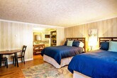 Feel at home in this beautiful lodge at the River Front Resort, located 10 minutes from downtown Elkins and 12 minutes from the Elkins-Randolph Co. Regional Airport. This beautifully decorated space, designed by a local, features unique furnishings and a warm ambiance. It includes two comfortable queen beds, a smart TV perfect for streaming your favorite shows, complimentary coffee and tea, and fast Wi-Fi, ideal for remote work. The lodge is right on the river, great for fishing or any other wildlife adventures you may have. Enjoy step-free access to this room and free parking directly across the street. The room occupancy permits 4 overnight people. Even though the best Wi-Fi in the area is provided, you may experience occasional interruptions due to the location. Profiles with a review rating lower than 4 stars will not be allowed to book this property on an instant book basis, and if for whatever reason the reservation confirms through the system, the reservation may be canceled. For guests with new profiles without reviews, these requests will be reviewed manually and will be subject to screening and questioning before a reservation may be confirmed. Please treat the place with respect. If any problems arise, the host will do their best to take action ASAP, but there is no one living on site 24/7. Includes fast Wi-Fi. [SI]