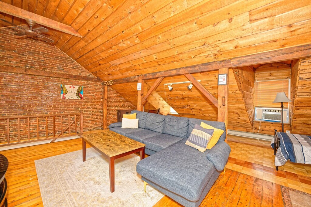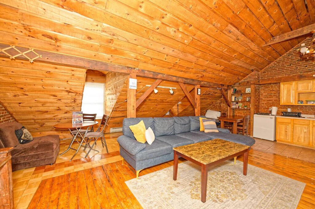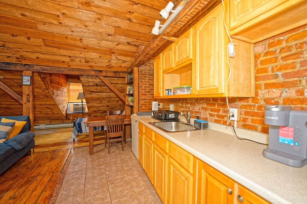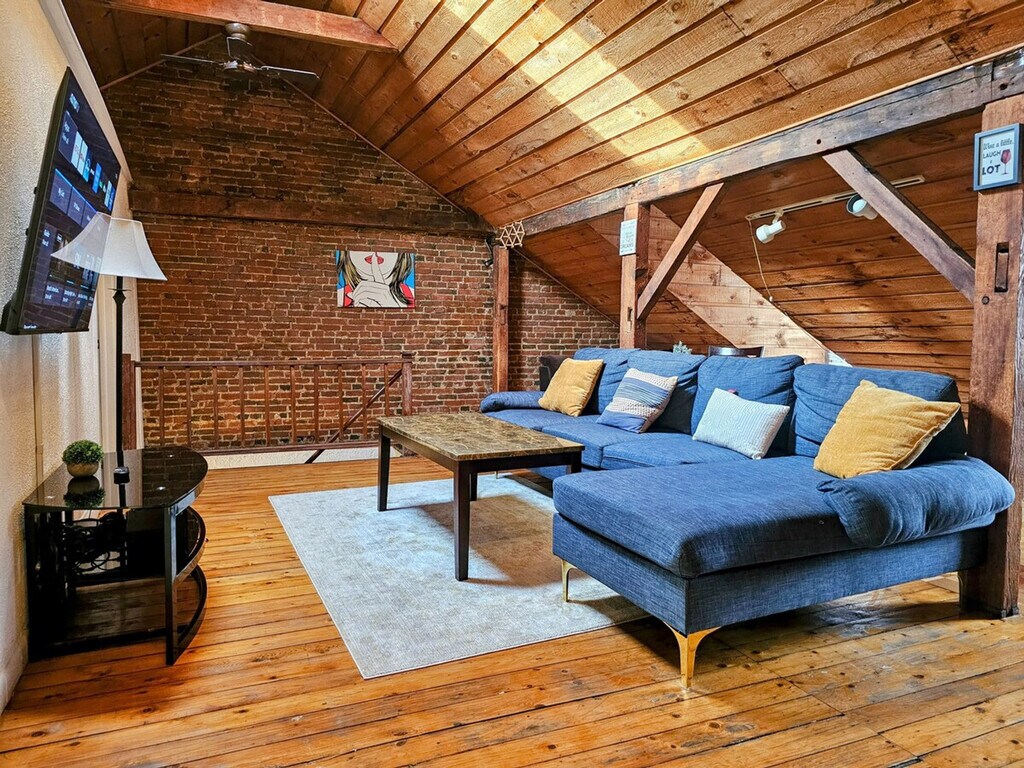 The advertised rate of $2,590/month is the lowest available price, based on a 1 month(s) stay with a move-in date of April 9, 2026. Rates vary depending on the duration of stay, season, and other parameters. For exact pricing and additional pricing components, please visit our website and enter your desired move-in and move-out dates. The rate is applicable when billed upfront; it can be higher if billed in multiple payments. Feel at home in this attic loft located on the entire 3rd floor of a renovated historic 200 year-old building in a quiet neighborhood of Albany's Pastures. This beautiful loft suite features exposed brick and hardwood, a full kitchen and dining area, and a private bathroom with toiletries. It has a partial wall for the bedroom section, a full wall to isolate the bathroom, and a kitchenette in the living area. Relax on the large sectional couch with a 55" 4K Xumo TV, or enjoy the 32" HDTV with Roku in the bedroom. The kitchenette has an induction cooktop, refrigerator, microwave, fruit blender, and small toaster oven. Access to a fenced backyard, wireless printing station, and laundry are available in the building hallway. This apartment is in a great location near Albany Medical Center, MVP Arena, Empire State Plaza, Library, Lark Street, State Offices, and courts. It offers easy access to local and regional bus routes and highways (I-787, I-90 & I-87). Smoking, burning, and parties are not allowed on the property. All marijuana and cigarette smoking on-site is banned, and no incense is allowed. Please respect your neighbors. [SI]