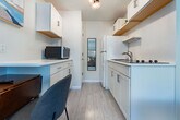 Feel at home in this bright and inviting studio condo perfectly located in the Aspen Core, just a short walk to the gondola, world-class restaurants, shopping, and all that Aspen has to offer. Situated directly on the Roaring Fork River, this end unit features breathtaking river views and additional windows that fill the space with natural light. The clever design includes a Murphy bed that easily retracts into the wall, creating extra living space when desired. The kitchen is fully stocked with everything needed to prepare home-cooked meals. Relax with cable television, or unwind in the full bathroom with a shower/tub combo. From the windows, you’ll also enjoy scenic Red Mountain views. Located in the Mountain River Condominiums on Hopkins Ave. Includes a desk, chair, and high-speed Xfinity Wi-Fi, making it ideal for remote work. [SI]