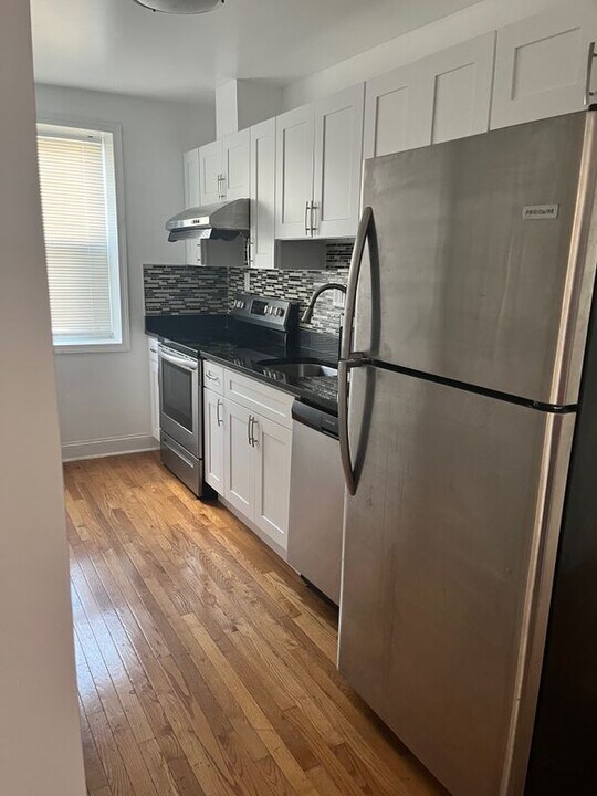 Recently remodeled 2nd floor, 2 bedroom, 2 bath apartment has hardwood floors throughout. The galley kitchen has tile backsplash and all stainless-steel appliances including refrigerator, dishwasher and microwave plus electric range and beautiful new cabinets with plenty of storage. Two tile/stone baths--one with tub and surround and the other with a stall shower--each with newer hardware & medicine cabinet. All electric with central air and heat. High ceilings . Shared coin-operated laundry. Street parking. Can also be used as a 1-bedroom apartment utilizing the 2nd bedroom as a family room or TV/office space. Minutes from Temple University.