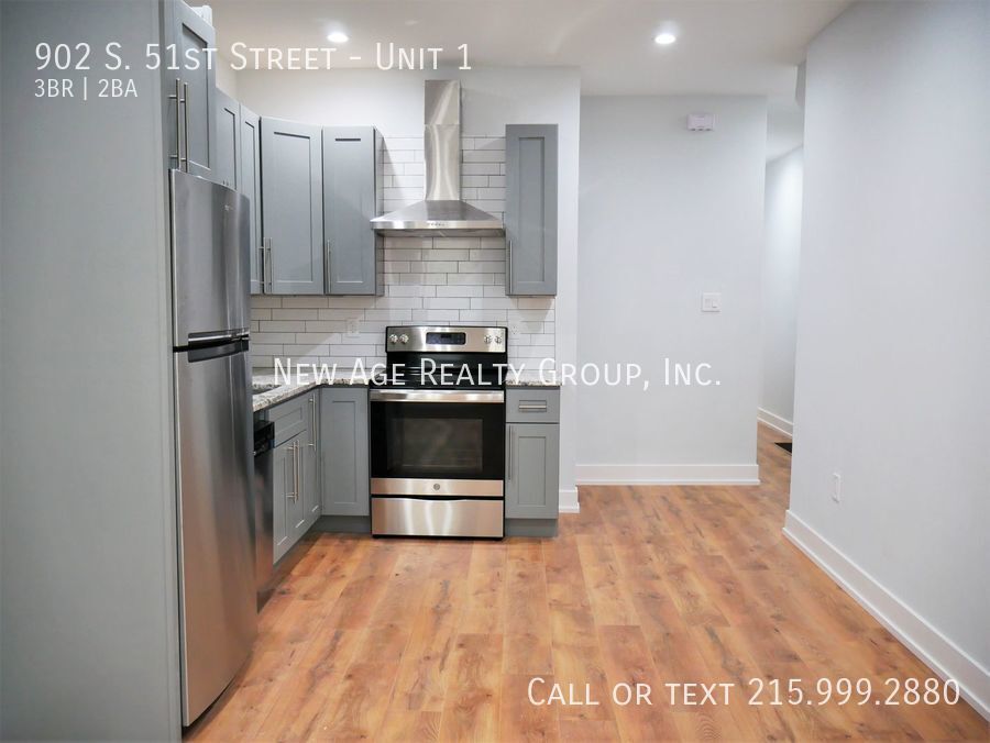 This is a modern 3 bedroom, 2 bathroom bi-level apartment located near Baltimore Ave in the Cedar Park neighborhood of West Philadelphia. Upon entering, you have a recently renovated, spacious common area, including the living room, dining nook and kitchen when you walk in on the 1st floor. It features hardwood floors, iron railings, recessed lighting and new HVAC. The kitchen has a stainless steel dishwasher, electric stove, and refrigerator. Two of the bedrooms are located near the rear of the unit and have closets. The third bedroom and second bathroom is located on the lower level. The brand new bathrooms are fully tiled with a tub/shower and under the sink storage. There is a washer and dryer located in the unit. There is a private patio located in the rear of the unit. There is a second bathroom located on the lower level. This unit has forced heat and central A/C. This property is located very close to Cedar Park, Carbon Copy Brewing, Kingsessing Rec Center and much, much more on Baltimore Avenue. Tenants are responsible for electric and gas. There is a $75 per month charge for water/sewer. Tenants will also need to obtain renters insurance! Pet Policy: Pets are not allowed. All New Age tenants will be automatically enrolled in a Resident Benefits Package (RBP) for $25 per month, which includes $5k in property damage reimbursement, credit building through timely rent payments, a resident rewards program, and so much more! These benefits are designed to improve your living experience and put money back into your pockets. All information about this package can be found at