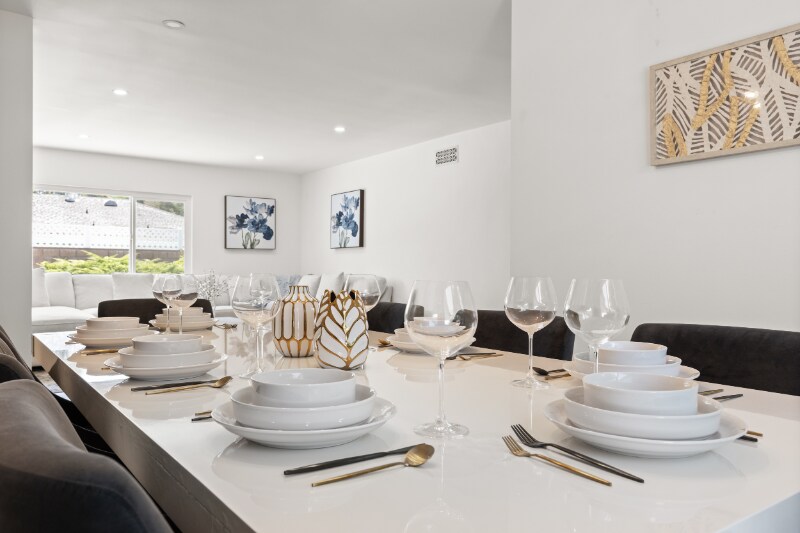 Property Id: 2172828 Welcome to this newly remodeled modern 5-bedroom home, perfectly situated on a quiet cul-de-sac in Northridge (Sherwood Forest adjacent). Designed with comfort and style in mind, this home features sleek upgrades, spacious interiors, and thoughtful details throughout. An open-concept layout connects living and dining to a chef's kitchen featuring Bosch smart appliances, Calacatta Gold quartz counters with island seating, and a built-in bar—perfect for everyday living and entertaining. The serene primary suite offers a dual-vanity bath, walk-in closet, and spa shower. Four additional bedrooms provide generous light and flexibility for family and guests. Smart comforts include Google Nest, Ring security, and a Samsung washer/dryer. Outside, drought-tolerant landscaping, a round (circular) driveway, and a 2-car garage add convenience. Enjoy cul-de-sac privacy while staying close to shopping, dining, parks, and top-rated schools—an ideal turnkey choice for comfortable, stylish living.