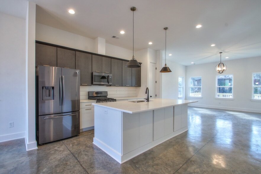 Beautiful home in East Nashville available for lease! Built in 2021 w/ luxurious finishes and 10 ft. ceilings throughout. Open kitchen w/ island, quartz counters, gas range, stainless steel appliances, and pantry. Large living room w/ great natural light. Dining room. Stained concrete floors throughout main level. Spacious primary suite w/ walk-in closet and tiled walk-in shower. Large deck and backyard space! This home also features a tankless water heater and off-street parking. Washer & dryer included. Awesome East Hill neighborhood location less than 5 miles from downtown Nashville.