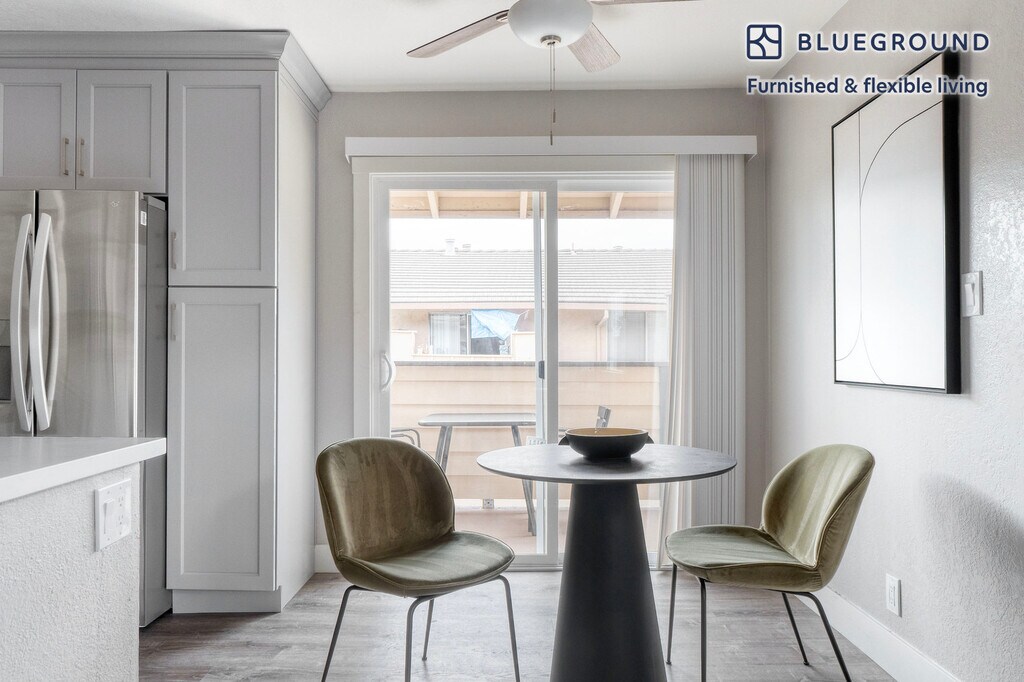 Show up and start living from day one in Santa Clara with this stylish one bedroom Blueground apartment. You’ll love coming home to this thoughtfully furnished, beautifully designed, and fully equipped Santa Clara home. (ID #SFO1486) The advertised rate of $2,700/month is the lowest available price, based on a 1 month(s) and 27 day(s) stay with a move-in date of November 14, 2025. If you’re looking for a 1-year stay, the rate is $4,360/month. Rates vary depending on the duration of stay, season, and other parameters. For exact pricing and additional pricing components, please visit our website and enter your desired move-in and move-out dates. The rate is applicable when billed upfront; it can be higher if billed in multiple payments. Brokers are welcome to reach out. Were you looking for an unfurnished lease? Try Blueground instead and upgrade from unfurnished to furnished living: - Furnished at rates comparable to unfurnished - No setup or furniture costs - save thousands - Move-in ready - save time, just bring your suitcase Designed with you in mind Gorgeous furniture, fully equipped kitchen, smart TV, and a premium wireless speaker are just a few of the amenities you’ll find inside this one bedroom apartment. Ideally located in Santa Clara, you’ll find a lot to love outside as well. When you’re ready to relax, you’ll be happy to discover every Blueground bedroom comes with superior quality mattresses, luxury linens, and cozy towels. We handle everything so you can simply show up and start living. This apartment also offers in-apartment laundry. Sleeping arrangements King Bed, 70.8in/180cm Amenities Building amenities unique to this one bedroom apartment include an on-site: - Dryer - Swimming pool - Washing machine - Parking - Pets allowed Arrival and ongoing support The entire apartment is yours to enjoy! Throughout your stay, you’ll have access to our Client Experience team through the Blueground App. You can schedule additional cleanings, submit maintenance requests, and view our neighborhood recommendations with just a few taps. We’ll share all details upon confirmation of your stay. Ideally Located This furnished home is in the mid-sized city of Santa Clara which has 116,000 people living there. Many singles live in Santa Clara with 20% of the total population between the ages of 25-34. Residents of Santa Clara rely mainly on their cars to commute to work. This city is home to the newly built Levi’s stadium, where the San Francisco 49ers play. Also, international soccer games, concerts, college football and other events are often held here. Other recreational activities include Great America amusement park and Kuma Trapped Escape Room. Other things to note Building amenities may have an extra cost. This Blueground apartment has flexible lease options, allowing you to book it for one month, a year, or more. Pets are welcome, though weight limits and breed restrictions apply and may incur fees. Parking is offered based on availability and is subject to a fee. Please keep in mind that this is a walk up building. We take great pride in ensuring every photo displayed is shot in our own units with our actual furnishings. That said, we regularly refresh our decor and furniture arrangement, which may differ from what’s pictured. Also note - This apartment has an assigned parking spot that is not suitable for larger vehicles - There are stairs leading up to the entrance of this apartment, but no elevator [SI]