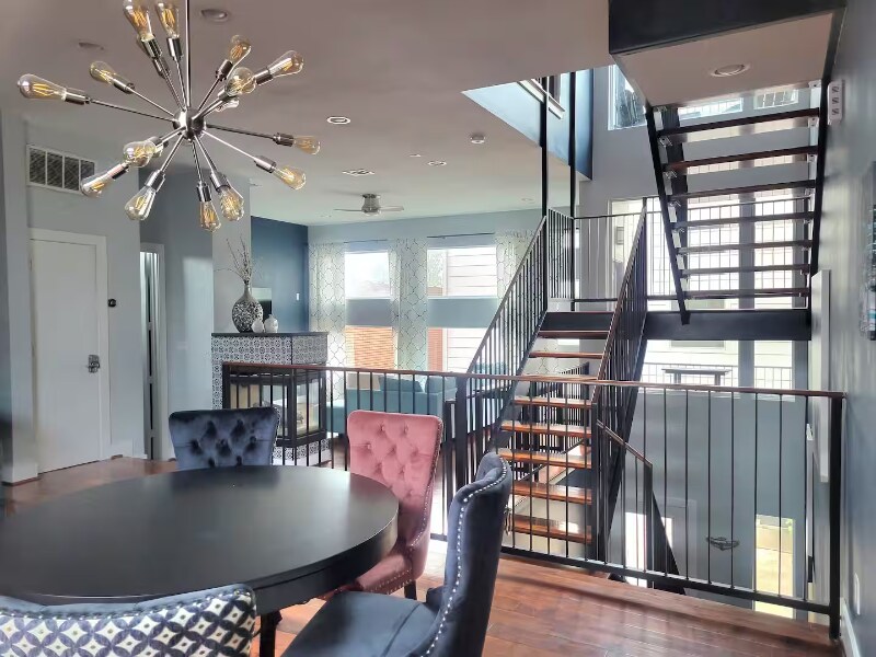 Property Id: 2175313 Welcome to the Skyline Views at the Center of the HOUniverse! This fabulous 4 story modern and industrial style townhome is located in East Downtown, Houston. We are minutes away from the Convention Center (GRB), Toyota Center, Minute Maid Park, and the Shell Energy Stadium. Enjoy breathtaking views of the Houston skyline & adjacent stadiums in our rooftop terrace! Our home primarily caters to business personnel, conference exhibitors/attendees, sports fans and small families visiting Houston.