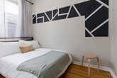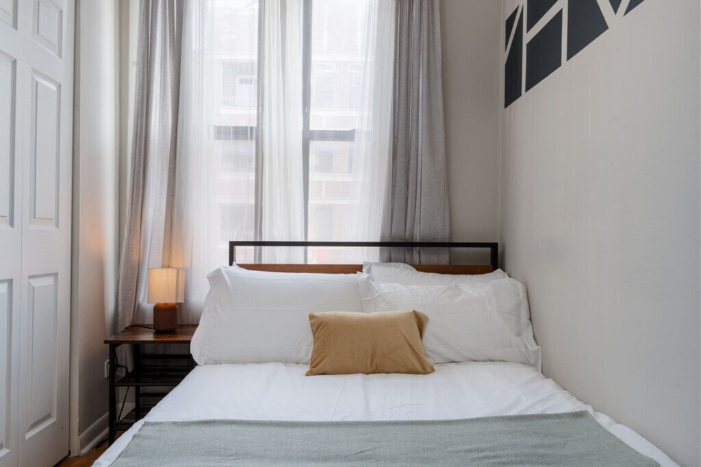 Feel at home in this urban oasis, situated on the 2nd floor of a walk-up building (stairs are required to access the building, and there is no elevator) at the intersection of Ukrainian Village and East Village. This apartment comfortably sleeps 4. This apartment features in-unit laundry, two dedicated workspaces, a dining/work table, a Nest thermostat, a smart TV with Chromecast, self check-in, and high-speed Wi-Fi. The sofa may serve as additional sleeping space, however please note it does not have a pull-out bed. Free street parking is occasionally available along Damen Ave, which conveniently runs adjacent to the building. Additional street parking is often available on Iowa St but requires a city sticker, plus a designation for zone #168 added to the sticker. The city sticker costs $95/year for standard passenger vehicles, and adding a zone number costs $25/year. This apartment is in walking distance to trendy cafes, bars, and retail shops on Division Street, Chicago Ave, and Milwaukee Ave. All within walking distance are coffee shops, multiple parks, BYOB sushi and Thai, grocery and convenience stores, breweries, and countless bars and restaurants. Smoking of any kind is prohibited anywhere on the premises, including outdoor spaces, and will incur a $150 fine, with additional fees for remediation potentially applying. Quiet time is after 10pm. Guests must cover the cost to replace unreturned access devices such as keys, key cards, fobs, or parking passes. Guests take full responsibility for loss, injury, or damages that occur on the premises and its facilities. Guests must be at least 21 years old to book and authorized guests only, and no booking on behalf of others. No parties, gatherings, or commercial uses. Includes two dedicated workspaces. We will generate a rental lease for you to use in your application for a parking sticker. The sticker will be mailed to the building and typically arrives in 1-2 weeks. The Nest thermostat allows temperature changes within set ranges: set to Heat mode and adjustable between ~65-74 degrees in cool months and set to Cool mode and adjustable between ~68-78 degrees in warm months (specific ranges are subject to change). Registration Number: #R2 [SI]
