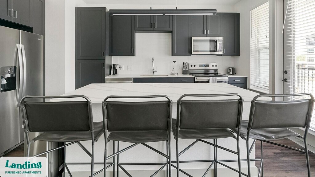 Landing is a top-rated, fully furnished apartment network with thousands of homes across 250+ U.S. cities. With premium amenities, a mobile app to manage your stay, and 24/7 support. Our apartments have everything you need for monthly and longer stays. 6-Month+ Stay base rent: starts at $2427/mo 12-Month+ Stay base rent: starts at $2155/mo Landing's apartments at The Standard on the River are designed for comfortable, easy living, with the ability to stay as long as you like. All Landing apartments include: - Fast Wi-Fi - Stylish furnishings - Fully-stocked bathroom - Smart TVs - Comfortable bed - Professionally cleaned - Guest support Stay longer for cheaper! The longer you stay, the bigger your discount. Price advertised is for a 12-month stay, including all utilities and fees, and may vary based on availability. We manage multiple units at this property. While all feature a similar style and furnishings, the layout and specific design elements may vary slightly from the photos provided. Some of the nitty-gritty: a background check and proof of income are required; we're completely smoke-free; pet-friendly options are available; parking is subject to availability.