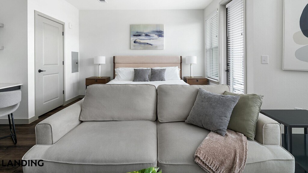 Landing is a top-rated, fully furnished apartment network with thousands of homes across 250+ U.S. cities. With premium amenities, a mobile app to manage your stay, and 24/7 support. Our apartments have everything you need for monthly and longer stays. 6-Month+ Stay base rent: starts at $1699/mo 12-Month+ Stay base rent: starts at $1699/mo Landing's apartments at The Standard on the River are designed for comfortable, easy living, with the ability to stay as long as you like. All Landing apartments include: - Fast Wi-Fi - Stylish furnishings - Fully-stocked bathroom - Smart TVs - Comfortable bed - Professionally cleaned - Guest support Stay longer for cheaper! The longer you stay, the bigger your discount. Price advertised is for a 12-month stay, including all utilities and fees, and may vary based on availability. We manage multiple units at this property. While all feature a similar style and furnishings, the layout and specific design elements may vary slightly from the photos provided. Some of the nitty-gritty: a background check and proof of income are required; we're completely smoke-free; pet-friendly options are available; parking is subject to availability.
