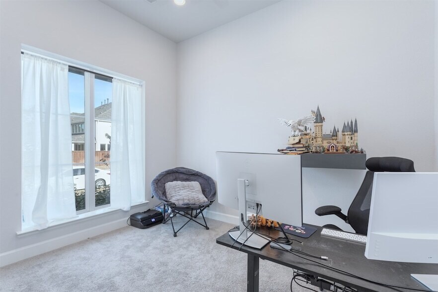 Stunning 1-story, 4 bedroom Perry Home + Private Study, 3.5 Baths, & Modern Finishes all thoughtfully arranged across 2,737 sf & 12' ceilings elegantly designed living space. Built in 2022, this meticulously maintained home seamlessly blends modern convenience with timeless sophistication. Gourmet Kitchen offers high-end finishes, generous counter space, a corner walk-in pantry, and an island with built-in seating, perfect for culinary endeavors or casual dining. Features a dining area flowing into the spacious open floor plan, highlighted by a stunning wall of windows that fill the space with natural light. The expansive primary bedroom is bathed in natural light, while the ensuite bathroom offers dual vanities, a garden tub, a separate glass-enclosed shower, & two large walk-in closets. A private guest suite with its own full bathroom enhances the home s versatility & comfort with 2 additional bedrooms, a bath, and 1 half bath. The covered backyard patio is ideal for relaxing or entertaining, while the 3-car garage provides ample storage & convenience. Conveniently located south of 380 with easy access to 720, this property offers the perfect balance of accessibility and tranquility. The community features a pool, adding to the lifestyle appeal of this remarkable home. Move-in ready and impeccably maintained, this home is an opportunity you won t want to miss. Schedule your private showing today! Owner works from home, 1 hour notice requied. Refrigerator, Washer, and Dryer can stay.