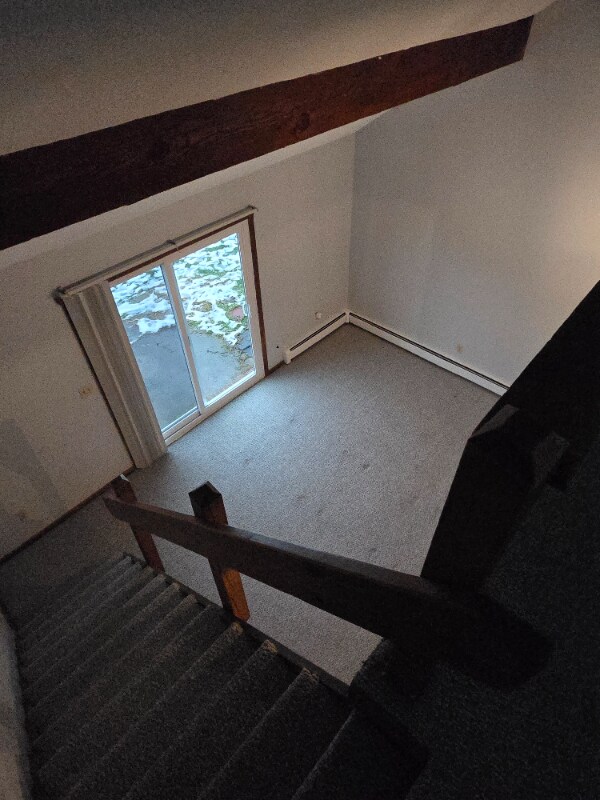 Property Id: 2274810 A beautiful 1 bedroom loft opening. This loft has vaulted ceilings and wood beams. All side by side living. It's like living in a condo without the condo fee! The first floor has a half bath, L shaped living room, dining room, and open floor plan to a sliding door that opens to concrete patio. Wall to wall closet in the dining room. Galley kitchen with appliances. The second floor has the loft bedroom, full bath and walk in closet as well as additional storage space. The upstairs is the master bathroom and full walk-in closet and full bath. Additional storage on the second floor. Secured buildings, double banks of washers and dryers and ample parking. The rent is $750.00 plus electric, we pay everything else, including heat. All utilities except electric are included in the rent. Heat, water, sewer and trash pickup are included in the rent. Come see it before its gone!