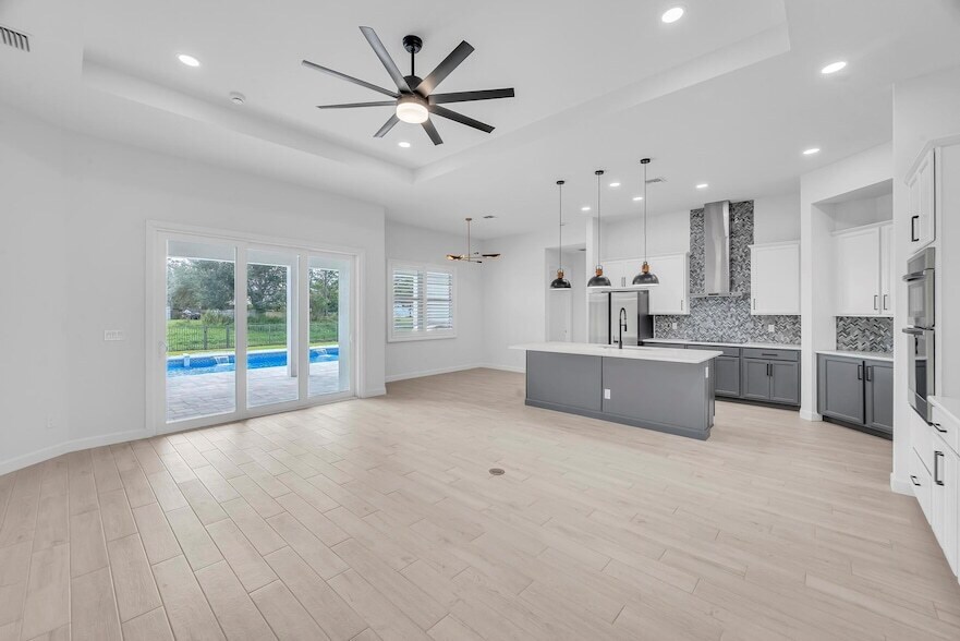 Spectacular BRAND NEW POOL HOME in prime location on the Treasure Coast ! 4 bedroom + DEN/ 3 bath / 2 car garage and BRAND NEW POOL . This house features all bells and whistles: wood like tile, gourmet kitchen, OPEN PLAN LIVING AREA, 2 car garage, outdoor kitchen, salt water heated POOL , SUMMER KITCHEN and FENCE! Enjoy Florida outdoor living in this amazing pool home overlooking the canal. IMPACT GLASS WINDOWS THROUGHOUT! Minutes to TRADITION , easy access to main roads, easy short drive to the beach. LOCATION, LOCATION. Pool and Lawn care and indoor PEST control included in the rent price. Probably one of the nicest homes in the area with no HOA. Available Nov 15.