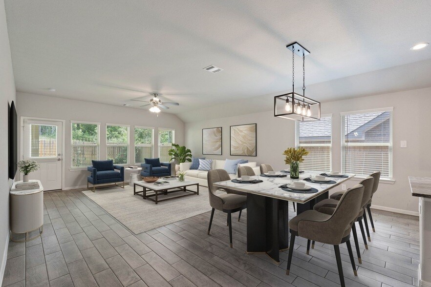 Come fall in love with this immaculate home & amazing floorplan! Upon entry, you are greeted with beautiful wood-like tile that flows througout the main areas!You will notice plenty of windows giving great natural light! The oversized living room give endless design options! The kitchen has a reverse osmosis system, walk-in pantry, & motion sensor under cabinet lighting! You will love the stunning 8 ft. long granite top island! The primary suite overlooks your peaceful backyard & offers a soaking tub, & giant walk-in closet with built-in shelves! The front bedrooms has it's own private en-suite bathroom too! This could make a personal office or guest suite! Every bedroom is a great size with a generous closet! Plus a WHOLE HOME water softener, full gutters, extra long covered patio & NO BACK NEIGHBORS! You are estimated 4 miles to I-45, 2 miles from HEB & 4 miles to Lake Conroe! The Community offers a fishing pier, tennis courts, walking paths & park! FRIDGE WASHER & DRYER INCLUDED!