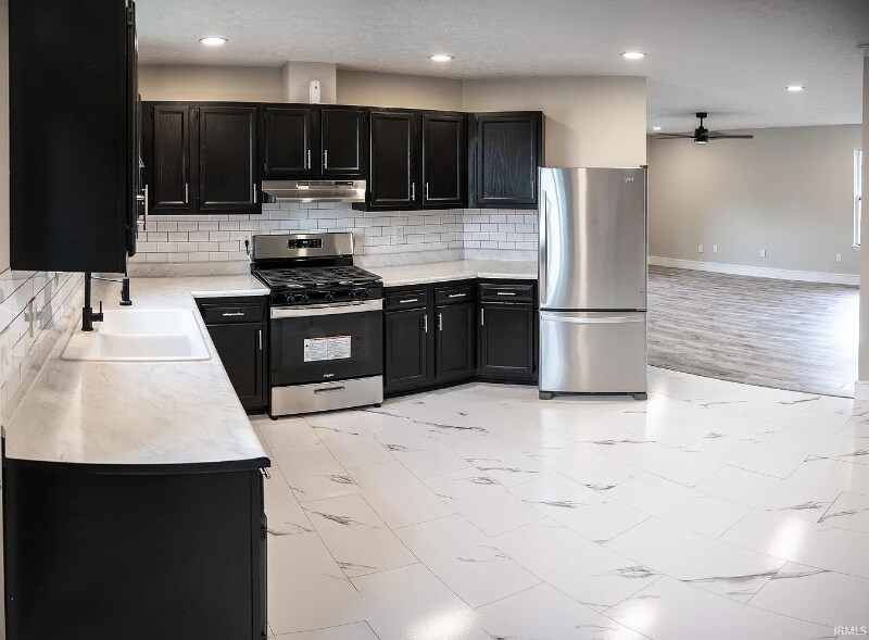 Property Id: 2392248 Be the first to live in this totally renovated 3 bedroom, 1 bath single-family home (1,040 sqft) in a convenient Kokomo neighborhood! Move-in ready with EVERYTHING NEW: furnace, central air, water heater, appliances (refrigerator, gas oven/range), flooring, paint, trim, recessed lighting with dimmer and night-light features, remote-controlled ceiling fans, and a completely updated bathroom with modern fixtures. Enjoy the open living room (18x15), eat-in kitchen (13x13), three main-level bedrooms (13x11 primary, two 12x10), and laundry hookups for your own washer/dryer. One-story layout is perfect for easy living, with vinyl siding, asphalt roof, double-pane windows, and crawl space foundation. Outside: covered porch, level/sloped 6,098 sqft lot (47x130), plus two sheds (12x10 and 8x6) for storage, and off-street parking. Close to shopping, dining, Bon Air Elementary/Middle, and Kokomo High School.