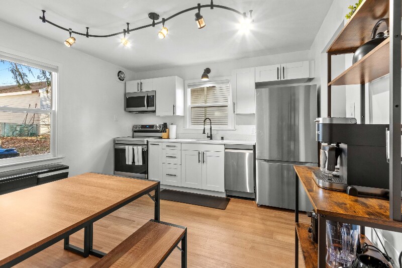 Property Id: 2283171 Enjoy this wonderful furnished 2 bedroom (Queen bed in each bedroom), 1.5 bath unit in the heart of Sturgeon Bay, WI. RATE INCLUDES THE FOLLOWING Furnishings (sofa, 3 Smart TVs, washer & dryer, 2-queen beds... ...) Housewares (pots & pans, kitchen utensils, coffee maker... ...) Linens (bed linens, bath linens, kitchen linens) Utilities (electric, gas, water, garbage, recycling) WIFI (fast speeds) Snow Removal Lawn Maintenance Parking (1 garage space, 2 driveway spaces) If you're looking for a home-like experience on your next work relocation or temporary stay within the Sturgeon Bay area for 1 month or longer this is a great choice! This beautifully remodeled 2 bedroom, 1.5 bath features a fully equipped kitchen with stainless steel appliances, lvp flooring and modern cabinetry. The large living room chaise sofa is modern and inviting. Enjoy streaming all of your favorite shows from the living room Smart TV. The quality and convenience of this location near downtown Sturgeon Bay is ideal. The neighborhood is excellent for walking or biking and is located only a few blocks from the Sturgeon Bay Ship Canal. Walk down to Martin Park in the summer and catch music in the park or walk to any of the other numerous events in downtown Sturgeon Bay including the Sturgeon Bay farmers market. Enjoy the warm summer nights in the backyard equipped with backyard furniture and patio table with fire pit. Included is 1 garage parking space and two off street parking spaces. Please don't hesitate to contact me if for additional information or to request an application or schedule a viewing.