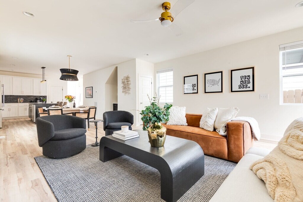 Welcome to this modern retreat in the heart of Nashville, where urban sophistication meets cozy comforts. Perfect for families and large groups, this thoughtfully designed home offers a fully equipped kitchen, a cozy living room, and an outdoor entertainment area complete with a ping pong table and lounge space. The quiet office and fast Wi-Fi ensure you can work efficiently, making this home ideal for both work and play. Located on a quiet residential street, yet just minutes from downtown, this home boasts a new turf and landscaped fully fenced backyard. It features two spacious master bedroom suites, a spacious upgraded kitchen with an oversized island, a covered outdoor hangout with a ping pong table, and a stylish dining area. Smart TVs throughout the home allow you to connect to your favorite streaming apps, and the record player and Sonos speakers add to the entertainment options. To elevate your stay, a variety of experience add-ons are available, including early check-ins and late check-outs, private chefs, in-home massages, and in-home yoga sessions. Nestled in the charming Hadley Park neighborhood, this home is surrounded by a mix of contemporary residences and classic Nashville homes. This vibrant area offers easy access to Nashville’s top attractions, with a variety of dining and drinking destinations like Blackstone Brewing, AVO, and L&L Market within a 5-minute drive. Commute times by car or Uber include Downtown/Broadway in 10 minutes, Midtown/Vanderbilt in 5 minutes, The Nations in 5 minutes, Germantown in 8 minutes, Gulch in 8 minutes, 12th South in 12 minutes, and East Nashville in 14 minutes. Quiet hours are from 10 p.m. to 8 a.m. Renters must be at least 21 years of age, and guests under the minimum age must be accompanied by a parent or legal guardian. The property shall not be used by more than the number of adults and children listed in your reservation. Pets are not permitted unless specifically noted in your reservation. No smoking is permitted on the property, including porches, decks, or outdoor areas, at any time. Refrain from using decorations that include glitter or confetti or using tape, tacks, or other adhesive on surfaces. An additional cleaning fee of up to $500 may apply for violations of the house rules or for excessive cleaning required. The home includes a dedicated workspace with reliable high-speed Wi-Fi, ensuring a remote work-friendly environment. Registration Number: