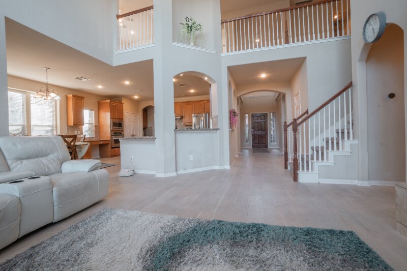 Property Id: 2333031 This stunning 4 Bed 3.5 Bath home is located in the master planned Steiner Ranch community in Austin. This home features high ceiling, arch door ways, huge windows, recessed lights. etc. Kitchen offers stainless steel appliances, granite counters, tiled backsplash, center island and tons of cabinet spaces. The master suite and bath is on the main level with dual vanities, garden tub, and separate walk-in shower. Three large bedrooms upstairs, one has it's own private bath. Other features include: - Whole house water softener and filtration. - Electric car charger in garage. - Huge backyard with patios on two levels. - Walking distance to highly rated Laura Welch Bush (LWBE) and Canyon Ride Middle (CRMS) Schools. - Appliances: Washer/Dryer, Refrigerator, Microwave/Oven. - 2 Car Garage. Steiner Ranch offers world class amenities including: - Multiple parks, Hiking Trails - Swimming Pools - Volleyball, Tennis/Pickle ball courts - Party Pavilions - Lake Access - Dog Parks House is also available for longer term (more than a year) renting. Renter is responsible for water, gas and electric. No smoking allowed. Pets permitted with additional fees. Zillow listing:
