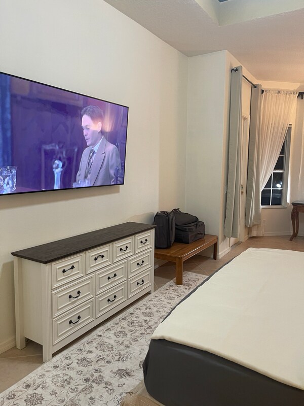 Property Id: 2219324 Cosy delightful studio apartment with a king sized bed, a 75” tv, work space, closet, kitchenette, a full private bathroom with a shower stall and a tub for soaking . There is off street parking, and a gym in the nearby club house. Although the entrance is shared , it's hardly used by anyone else. Close by is Lake Nona Medical City, Advent Health East Orlando, and Orlando Health Orange Avenue. Also close to Disney and Universal Studios.