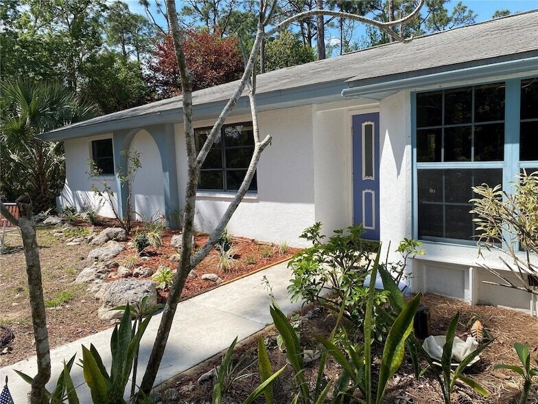 Private home on a peaceful wooded estate with a newly updated kitchen featuring butcher block countertops, large stainless steel sink, and stainless appliances. New laminate flooring in the living room and master bedroom, plus new carpet in the additional bedroom. Enjoy a refreshing pool, mature trees, and a 2-car garage. All this privacy just 7 minutes from Aldi, Publix, Walmart, the airport, Home Depot, and more, with quick access to I-75 for easy commuting.
