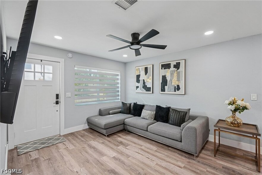 Fully furnished and move-in ready, this beautifully renovated 2-bedroom, 2-bathroom home offers comfort, style, and flexibility. Situated on a corner lot, the home features an open-concept layout filled with natural light, a modern kitchen with sleek cabinetry and updated appliances, and a warm, inviting living space designed for everyday living.Both bedrooms offer privacy and are paired with updated bathrooms featuring clean, contemporary finishes.Offered fully furnished, this home is ideal for professionals, relocating tenants, or anyone looking for a turnkey rental. Month-to-month options are available, providing flexibility without long-term commitment. Conveniently located in North Fort Myers near shopping, dining, and major roadways. Clean, modern, and ready for immediate occupancy.