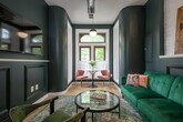 Located on the ground floor unit of a beautiful historic row house, this fully furnished space has everything you need for an extended stay in the district. This high-end apartment was designed by the award-winning hospitality design team from GrizForm design and everything has amazing touches. Deep green walls, custom wallcovering and art all combine with a floorplan which will make you want to stay longer. The living room is fitted out with a cozy couch, breakfast or work table, a dining area with a full kitchen and dining counter. There is also a full-size washer and dryer in the unit. The main bedroom is down a half flight of stairs and features a king-size bed and generous closet space. The main bath is not to be missed with a two-person soaking tub, stand-up shower, and cheeky wallpaper. All in, this place will make you feel like a rock star. Additional Verification Needed [SI]