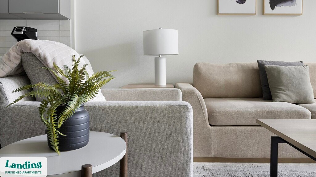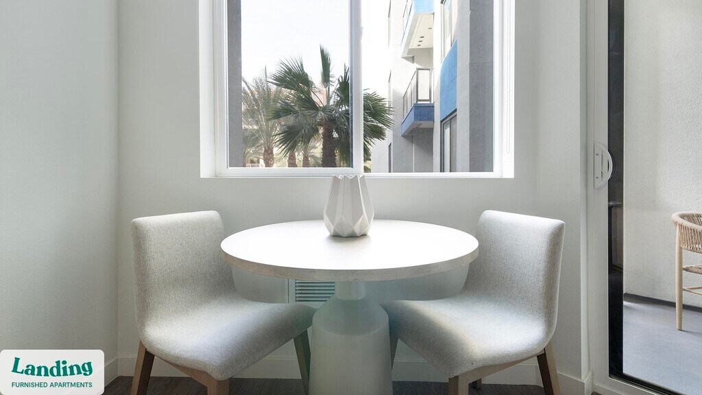 Landing offers flexible lease terms from weeks to months. Please always visit our website or contact us for the latest pricing & availability. Stay longer, save more: 6-Month Minimum base rent: starts at $2800/mo 12-Month Minimum base rent: starts at $2483/mo Landing offers flexible leases across a network of over 35,000 fully-furnished apartments throughout 375+ cities so you can rent on your terms, practically anywhere, and avoid the hassle of paying deposits or application fees. Visit to learn about all the benefits of a Landing membership, see our competitive up-to-date pricing, explore available apartments, take virtual tours, and make reservations online without jumping through traditional rental hoops. Landing's apartments at The Ellison are designed for comfortable, easy living, with the ability to stay as long as you like. Experience living with Landing Every apartment is outfitted with all the modern essentials including: custom-designed furnishings, a fully-equipped kitchen with deluxe stainless steel appliances, a gourmet coffee maker, premium linens, Smart TVs, and incredibly fast, reliable internet for working from home. When you live with Landing, you'll enjoy a hassle-free experience with the added benefit of 24/7 access to our dedicated member experience team. Some of the nitty-gritty: a background check and proof of income are required; we're completely smoke-free; bundled utility packages and pricing vary based on length of stay; pet-friendly options available; listed price reflects a 12-month minimum stay.