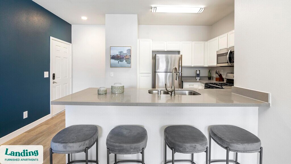 Landing offers flexible lease terms from weeks to months. Please always visit our website or contact us for the latest pricing & availability. Stay longer, save more: 6-Month Minimum base rent: starts at $2190/mo 12-Month Minimum base rent: starts at $1839/mo Landing offers flexible leases across a network of over 35,000 fully-furnished apartments throughout 375+ cities so you can rent on your terms, practically anywhere, and avoid the hassle of paying deposits or application fees. Visit to learn about all the benefits of a Landing membership, see our competitive up-to-date pricing, explore available apartments, take virtual tours, and make reservations online without jumping through traditional rental hoops. Landing's apartments at The Michael B are designed for comfortable, easy living, with the ability to stay as long as you like. Experience living with Landing Every apartment is outfitted with all the modern essentials including: custom-designed furnishings, a fully-equipped kitchen with deluxe stainless steel appliances, a gourmet coffee maker, premium linens, Smart TVs, and incredibly fast, reliable internet for working from home. When you live with Landing, you'll enjoy a hassle-free experience with the added benefit of 24/7 access to our dedicated member experience team. Some of the nitty-gritty: a background check and proof of income are required; we're completely smoke-free; bundled utility packages and pricing vary based on length of stay; pet-friendly options available; listed price reflects a 12-month minimum stay.