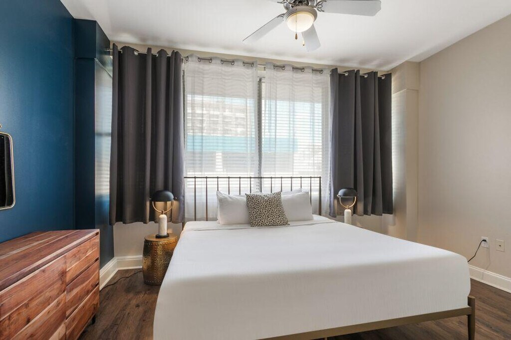 Situated just a brief 5-minute walk from the renowned French Quarter, this outstanding residence lies at the heart of New Orleans, boasting a sophisticated and fully furnished interior that seamlessly blends modern comfort with the city's vibrant cultural heritage. Step into luxury within this residence, featuring a well-appointed kitchen and carefully curated furnishings that enhance its chic atmosphere. Enjoy shared amenities such as a barbecue area, outdoor seating, and a fitness center, providing the ideal setting for relaxation and leisure. Take in breathtaking views of New Orleans from the rooftop pool, offering a unique and unforgettable experience. This residence features a well-appointed kitchen and carefully curated furnishings that enhance its chic atmosphere. Enjoy shared amenities such as a barbecue area, outdoor seating, and a fitness center, providing the ideal setting for relaxation and leisure. Take in breathtaking views of New Orleans from the rooftop pool, offering a unique and unforgettable experience. On-site paid parking available, starting at $40 per night for a maximum of 3 cars. Conveniently positioned just one block from Canal Street, this residence provides easy access to the iconic Streetcar, simplifying exploration of the city's attractions. Additionally, the nearby convention center, located just 1.6 miles away, adds to the convenience for both business and leisure travelers. Indulge in the city's renowned nightlife, with Bourbon Street's jazz clubs, Cajun restaurants, and charming bistros mere steps away. For a more tranquil retreat, explore the quaint streets leading to the French Market, a hub of gourmet cuisine and local craftsmanship. Don't miss the chance to wander through Jackson Square, where street performers entertain against the backdrop of the St. Louis Cathedral. Furthermore, this residence is within walking distance of the Caesars Superdome stadium, providing easy access to events and entertainment. Security is a top priority with controlled access, ensuring a safe and peaceful living environment. We may use video surveillance in public areas. Early check-in or late check-out may be available for an additional fee. The number of overnight guests cannot exceed the maximum occupancy. Extra guests and visitors are not permitted without management consent. Violators will be charged a $200 to $500 fine. House parties and the use of illegal substances are strictly prohibited. Any violation will result in immediate eviction and a $500 fine. A copy of a State Identification Card or Driver's License will be requested upon booking. Guests residing within a 40-mile radius must contact the host before booking. Travelers must be at least 21 years of age to make a reservation. This is a non-smoking building. Smoking is not permitted anywhere in the building, including the rooms. Any violation of this policy will incur a $250 fine, plus cleaning costs to remove smoke odors from the unit and linens. Pets are not allowed. Violating the pet policy may result in a $500 fine. Guests with service animals are encouraged to contact us before booking. Quiet hours are from 9 p.m. to 8 a.m. Violators will be charged a $200 fine. We are not responsible for any accidents, injuries, or stolen or damaged items that occur while on the premises, its facilities, or parking areas. The number of guests on the reservation cannot exceed the number specified in the booking. This includes visitors. Failure to comply with the guest limit may result in cancellation of the reservation. For same-day late check-ins, prior approval from the host is required before booking. [SI]