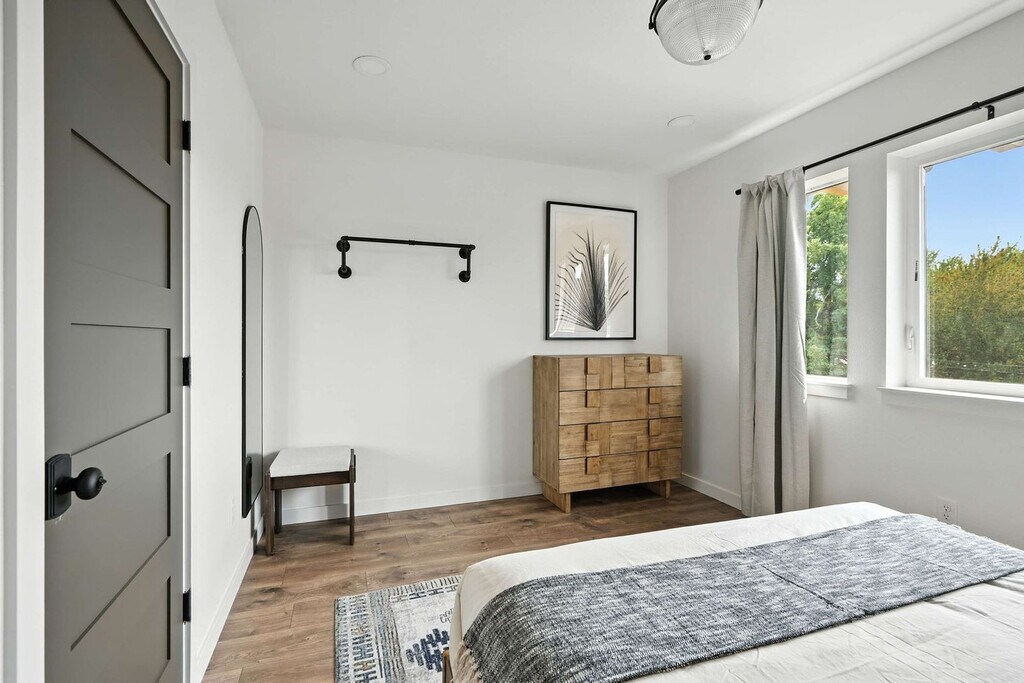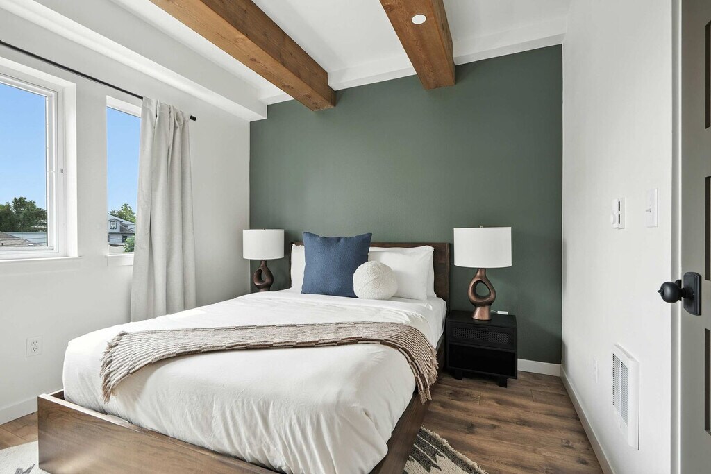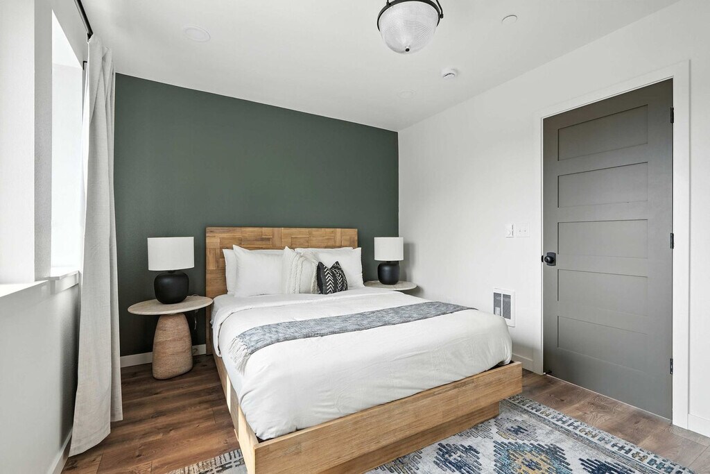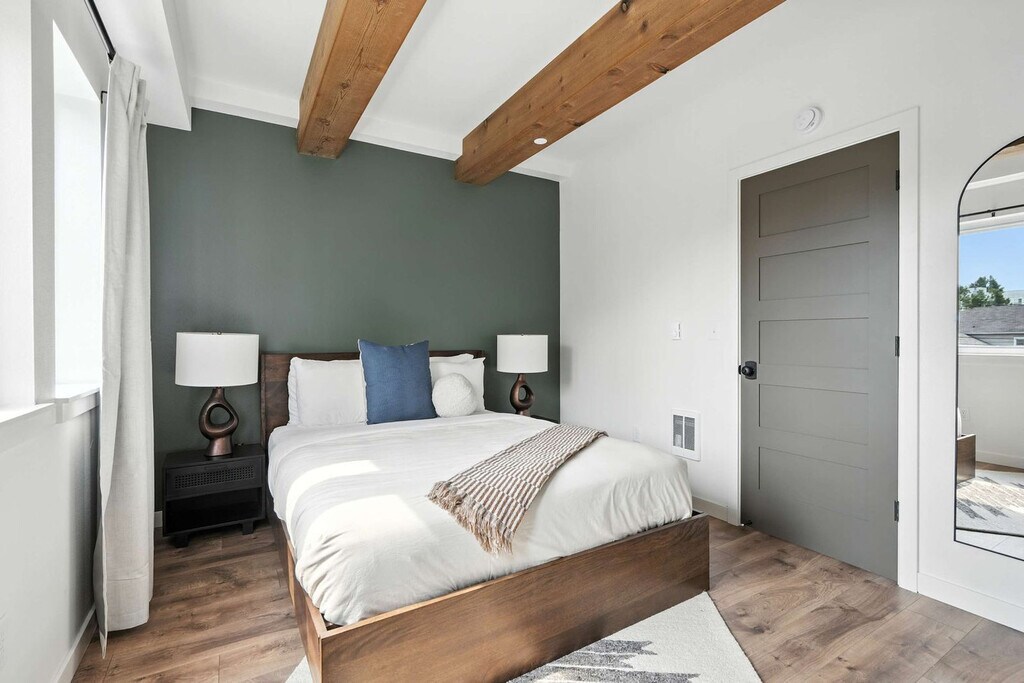 Feel at home in this spacious and brand new 6-bedroom, 3.5-bath Spanish-style home, spanning four stories plus a private ground-floor studio. Perfect for large groups, families, or retreats, this home is located in Kerns, named the Coolest Neighborhood in the U.S. by TimeOut. You're just steps away from Portland's top dining, shops, and culture. The ground floor features a private studio with a queen bed, full bathroom, kitchenette, and smart lock entry, along with an additional private bedroom with an en-suite half bath, ideal for added privacy or multigenerational stays. The main floor, or second story, boasts an open-concept kitchen with full-size appliances, cookware, and a Keurig, a dining area for group meals, and a living room with a smart TV and comfortable seating, designed for gathering and entertaining. The third floor offers two bedrooms and a split bathroom design, allowing multiple guests to get ready at the same time. The fourth floor includes two more bedrooms and a full bathroom with a tub/shower combo. This home features six bedrooms and 3.5 bathrooms across four stories, with a private ground-floor studio and separate bedroom for a flexible group layout. Enjoy super-fast WiFi, smart TVs for streaming or remote work, mini-split A/C and heating throughout, and Spanish-inspired architecture with clean, modern finishes. Street parking is typically free and easy on nearby blocks if you’re driving. Welcome to Kerns, one of Portland’s most desirable neighborhoods and officially crowned the Coolest Neighborhood in the U.S. by TimeOut Magazine. Here, charming tree-lined streets blend seamlessly with world-class dining, artisan coffee, and indie retail. Stroll to favorites like Screen Door, Canard, Petite Provence, Whole Foods, and countless hidden gems along NE 28th and Burnside. Spend a sunny afternoon at Laurelhurst Park, catch a live show at Revolution Hall, or grab drinks at one of Portland’s countless microbreweries—everything’s within walking distance. Whether you’re visiting for a celebration, a work trip, or just to explore Portland, this is one of the best places to call home base. This is a brand-new property, with final construction wrapping by August 15. Everything will be sparkling clean, furnished, and fully ready before your stay. Quiet hours are between 22:00 and 8:00. The home is equipped with super-fast WiFi and smart TVs, making it ideal for streaming or remote work.