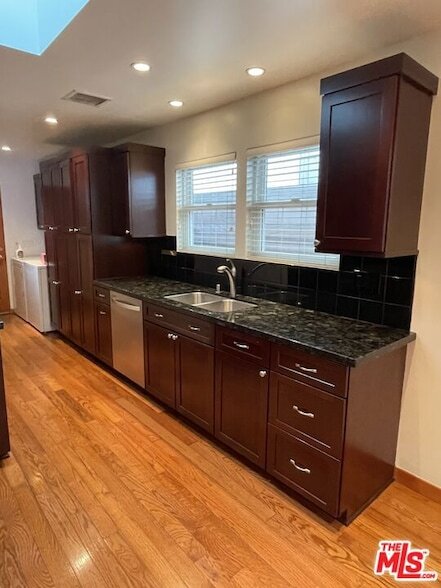 Charming California bungalow with modern updates inside and out. This cozy 2-bedroom, 1-bath detached front home, one of just two on the lot, features newer stainless steel appliances, granite countertops, and abundant natural light from skylights in the living and dining areas as well as both bedrooms. Enjoy a private, secluded front yard ideal for relaxing or al fresco dining. Includes gated carport parking for two cars. Conveniently located near Whole Foods, Baby Blues BBQ, and more.