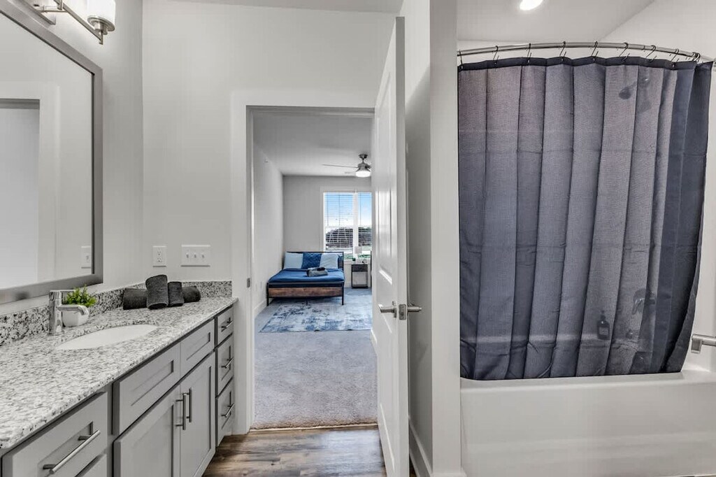 Stay in style in the booming city famously dubbed "the Startup Capital of the South"—Durham! This classy 1182-square-foot 2-bedroom and 2-bathroom apartment features a king-size bed and two plush full-sized beds for your comfort. With lightning-fast Wi-Fi, a separate workstation, a fully equipped kitchen, and other luxury amenities, this apartment is specially designed for your longer-length stays. Step out to a lively neighborhood in the heart of Durham Central Park, just steps from restaurants, cafés, bars, and shops. Begin your day with a perfectly brewed cup of tea or instant coffee—decaf or regular—prepared just the way you like it from the convenient coffee station in your upscale kitchen. Whether you're here for business or leisure, this space is designed to provide the perfect balance of comfort and convenience. With vibrant restaurants just minutes away, you might find yourself exploring the culinary scene in Durham each night. Of course, after a long day, it’s reassuring to know that your well-equipped kitchen and elegant dining table are ready to provide a 5-star dining experience right at home. Whether you choose to venture out or stay in, this space serves as the perfect home base for work, relaxation, and entertainment. Step inside and discover an inviting open-concept living area, elegantly furnished to provide a blend of relaxation and functionality. Large windows flood the space with natural light, while modern décor and high-end finishes create a sophisticated yet comfortable atmosphere. The spacious living area is thoughtfully designed with plush seating, a 55” Smart 4K TV, and elegant décor. Fast Wi-Fi (300+ Mbps) is perfect for streaming, remote work, or video calls. Enjoy the smart TV with streaming services like Netflix, Hulu, and HBO Max (login required). Self check-in is seamless with a keyless smart lock, and a dedicated work station with a standing desk is perfect for remote work. The apartment also includes an in-unit washer and dryer with energy-efficient laundry appliances. We welcome up to two pets per reservation, each weighing under 35 lbs, with a fee of $49 per pet for stays of 1–6 nights. Additional charges apply for longer stays, with fees structured based on the length of stay and number of pets. For pets over 35 lbs, a one-time large pet fee applies. Bringing undisclosed pets into the unit may result in a minimum $500 fine and cancellation of your stay without refund. Early check-in and late checkout are available based on availability, with fees applicable for each additional hour. Optional mid-stay cleaning is available for extended stays, including new linens, surface cleaning, and trash removal. Situated in a vibrant neighborhood, this property places you within minutes of top attractions, dining, and nightlife. Enjoy easy access to Durham Bulls Athletic Park, Museum of Life and Science, Durham Central Park, The Carolina Theatre, Southpoint Mall, Lake Pine, Hillsborough Road Park, and the Museum of Durham History. Free on-site parking is available on a first-come, first-served basis, and public transit and ride shares are readily accessible, offering quick access to Uber, Lyft, and local transit. Quiet hours are strictly enforced from 8:00 PM to 8:00 AM to ensure a peaceful stay for everyone. Smoking is strictly prohibited anywhere on the premises, including inside the unit, on balconies or patios, and in shared or public spaces. If a smoke detector is tampered with, disabled, or triggered due to smoking, guests will be fined $2,500 and removed from the property immediately without refund. Unauthorized guests will result in a $500 fine per person, immediate removal from the property, and cancellation of the reservation without refund. The property is equipped with Minut noise monitoring devices and exterior security cameras. If noise levels exceed 80 decibels for more than 10 consecutive minutes, guests will be fined $2,500, removed from the property immediately, and their reservation will be canceled without refund. Self check-in is available with a smart lock or lockbox system, and some properties may require downloading an app for Bluetooth access. Check-in instructions will be sent via email or message. Guests must be prepared to download the required app for access. The apartment is remote work-friendly with a dedicated work station featuring a standing desk. Fast Wi-Fi (300+ Mbps) ensures seamless remote work, streaming, and video calls. A laptop computer is not included. [SI]