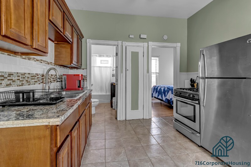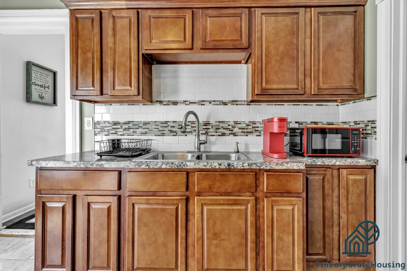 Property Id: 1747675 Features: * Queen beds in both bedrooms * 55" Roku TV * Fully equipped kitchen * FREE Washer & Dryer * FREE off-street parking * Flexible lease terms The living room is equipped with a 55" Roku TV for your entertainment. Take advantage of the fully equipped kitchen and enjoy home-cooked meals in the dining area. You will be situated just 0.5 miles away from Elmwood Avenue and a short way from Buffalo State University. The apartment has both lower and upper units with the same features. 716 Corporate Housing LLC Buffalo NY Furnished Rentals