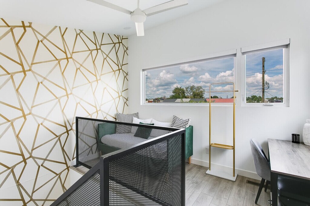 Welcome to this brand new, stylish, and modern urban getaway offering 1900 sq-ft of living space. Feel at home with ample room to relax and enjoy your stay. The immaculate outdoor entertainment space is perfect for unwinding after a day of sightseeing or bourbon tasting, featuring a grill, fire pit, and outdoor dining area. Inside, the fully stocked kitchen is ready for any traveler's experience, whether you're preparing a gourmet meal or a quick snack. The dry bar is ideal for mixing cocktails or enjoying a glass of bourbon from the nearby urban bourbon trail. Each bedroom is equipped with big screen TVs, and there are games, a switch console, and books for both kids and adults. The 3rd story office space provides a quiet and inspiring area with a twin bed and stunning city skyline views. The property is pet-friendly, and there is plenty of street parking available in front of the home. While you can typically find parking spots directly in front of the house, you may occasionally need to drive to find open spots. The opposite side of Jefferson Street, a one-way street in front of the house, usually has many open spots. Located just minutes away from Churchill Downs, distilleries, the KFC Yum Center, and the KY Expo Center, this home is the perfect base for your travels. Situated in NuLu, the East Market District of downtown, you'll find unique art galleries, specialty stores, antique shops, and a growing number of local restaurants and breweries. NuLu has been voted one of the 18 Best Food Neighborhoods in America by Thrillist Magazine. Quiet hours are implemented between 10pm and 8am. No large or loud parties are allowed on the premises, and only the intended guests may stay overnight. Exterior cameras are in use, and smoking is not permitted. Registration Number: LIC-STL-24-00164 [SI]