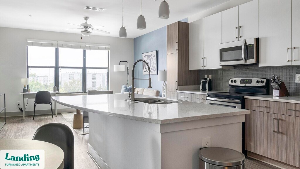 Landing offers flexible lease terms from weeks to months. Please always visit our website or contact us for the latest pricing & availability. Stay longer, save more: 6-Month Minimum base rent: starts at $3698/mo 12-Month Minimum base rent: starts at $3383/mo Landing offers flexible leases across a network of over 35,000 fully-furnished apartments throughout 375+ cities so you can rent on your terms, practically anywhere, and avoid the hassle of paying deposits or application fees. Visit to learn about all the benefits of a Landing membership, see our competitive up-to-date pricing, explore available apartments, take virtual tours, and make reservations online without jumping through traditional rental hoops. Landing's apartments at The Brady are designed for comfortable, easy living, with the ability to stay as long as you like. Experience living with Landing Every apartment is outfitted with all the modern essentials including: custom-designed furnishings, a fully-equipped kitchen with deluxe stainless steel appliances, a gourmet coffee maker, premium linens, Smart TVs, and incredibly fast, reliable internet for working from home. When you live with Landing, you'll enjoy a hassle-free experience with the added benefit of 24/7 access to our dedicated member experience team. Some of the nitty-gritty: a background check and proof of income are required; we're completely smoke-free; bundled utility packages and pricing vary based on length of stay; pet-friendly options available; listed price reflects a 12-month minimum stay.