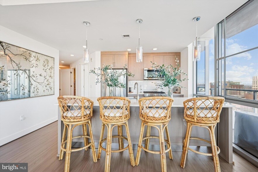 Availabe Dec 15, 2015. One parking space and one storage unit. Designer touches abound in this artistically appointed, sleek and modern 19th floor CORNER UNIT condo at 930 Rose in the heart of North Bethesda's highly coveted Pike and Rose. This 2 bedroom, 2 bath unit features floor to ceiling glass walls and your own private glass balcony to enjoy panoramic vistas as far as the eye can see including views of Sugarloaf and Bull Run. Highlights include custom wallpaper, impeccably appointed new open concept kitchen; living room with deep tray ceilings and electric fireplace; primary bedroom with ensuite bath, double vanity and walk in closet; second bedroom with dramatic sweeping views, in unit stackable washer/dryer, hall closets, and a dedicated parking space. This concierge-service level building will leave you wanting for nothing with its beautiful, fully staffed lobby, bike racks, rooftop with indoor and outdoor amenities including outdoor grilling area, 24-hour fitness center, and location near Metro, shopping, dining, and so much more. Pets allowed at owner's discretion on a case by case basis.