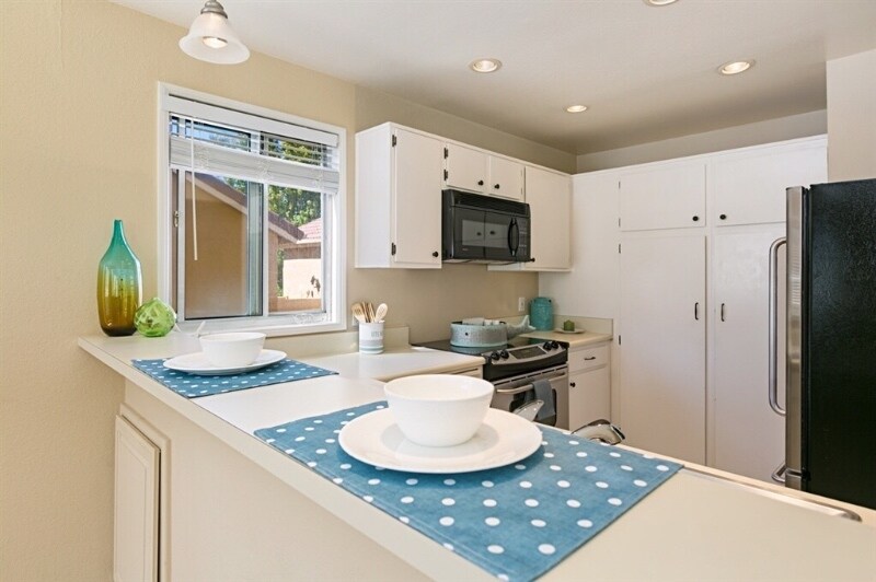 Property Id: 135250 6 months or 1 year lease. Beautiful and bright one bedroom condo. The condo is spacious with a vaulted ceiling on the 2nd floor. Windows on all sides, plenty of sun and views. Stainless still appliances. Huge bathroom with washer and dryer in the unit. Two balconies, one in the living room and one in the bedroom. Clean carpets, and fresh paints by the time the tenant moves in. Across the street is the shopping center with Vons, restaurants, and shops. Another 5-6 minute walk, another shopping center with Sprouts, more restaurants, BevMo and etc. It's very close to Solana Beach, about 25-30 mins walk straight down on Lomas Santa Fe. The Unit is just steps from the pool, spa, racquetball, and newly remodeled clubhouse. Assigned covered one parking space. *NOTE* Pets allowed with restrictions. Must meet HOA regulations.