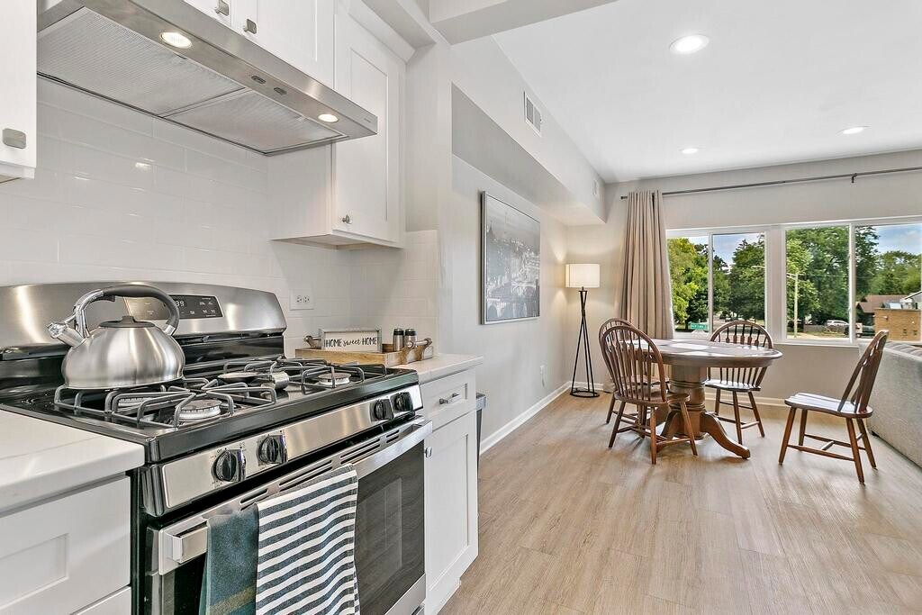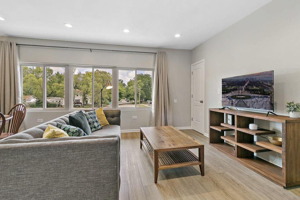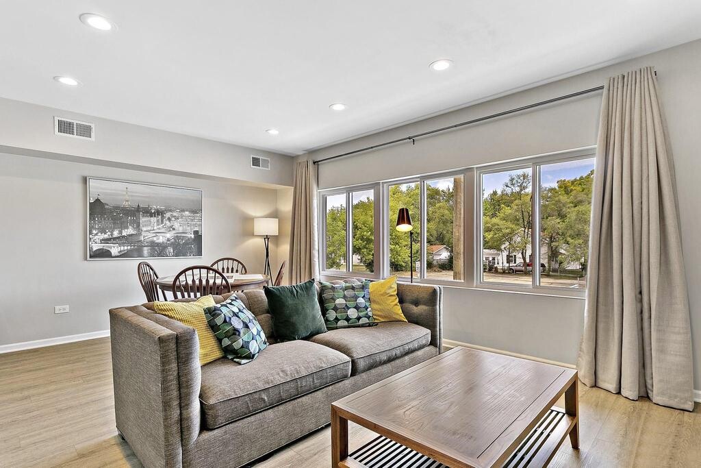 Property Id: 2409326 Welcome to this comfortable, high-quality modern apartment in the perfect location for your visit to Northern Illinois and the Chicago area. Located in Waukegan, known as “Green Town." You’ll be surrounded by beautiful parks, ravines, walking trails, a sandy beach, lakefront attractions, galleries, breweries, and great restaurants. We are very close to Six Flags,The Genesee Theatre, Great Lakes Naval Base, and AbbVie Inc. too! This private, spacious apartment is located on the second floor of an office building, offering a quiet and calm environment. Guests can park in the rear of the building and access the unit through a private back entrance and stairwell. Inside, the apartment has been fully updated with a modern design and includes everything you need for a comfortable stay. It features two private bedrooms and a third sleeping area with an accordion door and attached full bathroom. The primary bedroom has a king-sized bed, the second bedroom has a queen-sized bed, and the third space includes a queen pull-out couch. There are two full bathrooms. One with a standing shower and one with a bathtub. We also have an in unit full-size washer and dryer for your convenience. All utilities are included in the rent. We welcome small dogs and cats for an additional fee. If this unit isn’t available for your dates, feel free to reach out! We have other properties available and would be happy to help accommodate your stay.