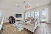 Discover this stunning home that seamlessly blends modern comfort with timeless elegance. Nestled in a serene and sought-after neighborhood, this home is an ideal sanctuary for those looking for both tranquility and convenience. Entry and extended entry with 12-foot ceilings. Game room with French doors frame the entry. Spacious family room with a wall of windows. Open kitchen offers an island with built-in seating space and a corner walk-in pantry. Primary suite with a wall of windows. Dual vanities, garden tub, separate glass enclosed shower and two walk-in closets in the primary bath. Guest suite just off the extended entry with a full bathroom and walk-in closet. Secondary bedrooms with walk-in closets. Utility room with private access to the primary bathroom. Covered backyard patio. Mud room just off the two-car garage. This home has been lovingly cared for, ensuring it is move-in ready. Apply today!