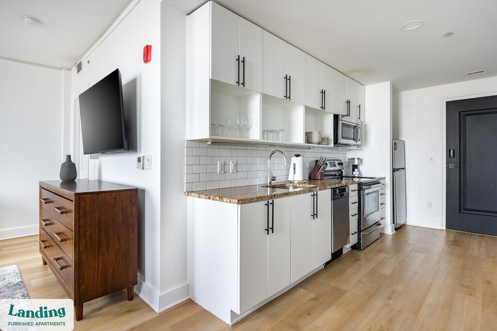 Landing offers flexible lease terms from weeks to months. Please always visit our website or contact us for the latest pricing & availability. Stay longer, save more: 6-Month Minimum base rent: starts at $1925/mo 12-Month Minimum base rent: starts at $1507/mo Landing offers flexible leases across a network of over 35,000 fully-furnished apartments throughout 375+ cities so you can rent on your terms, practically anywhere, and avoid the hassle of paying deposits or application fees. Visit to learn about all the benefits of a Landing membership, see our competitive up-to-date pricing, explore available apartments, take virtual tours, and make reservations online without jumping through traditional rental hoops. Landing's apartments at Pickwick Plaza are designed for comfortable, easy living, with the ability to stay as long as you like. Experience living with Landing Every apartment is outfitted with all the modern essentials including: custom-designed furnishings, a fully-equipped kitchen with deluxe stainless steel appliances, a gourmet coffee maker, premium linens, Smart TVs, and incredibly fast, reliable internet for working from home. When you live with Landing, you'll enjoy a hassle-free experience with the added benefit of 24/7 access to our dedicated member experience team. Some of the nitty-gritty: a background check and proof of income are required; we're completely smoke-free; bundled utility packages and pricing vary based on length of stay; pet-friendly options available; listed price reflects a 12-month minimum stay.